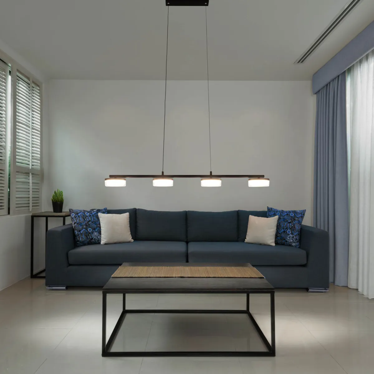 Die CIMO Pendelleuchte aus unserer Kollektion ist ein echter Hingucker für jeden Wohnraum. Durch ihre direkte und fokussierte Beleuchtung eignen sich Pendelleuchten ideal für Esstische, Kücheninseln, Arbeitsbereiche oder jeden Bereich, der gezieltes Licht benötigt. Sie setzen Akzente und sorgen für eine klare Lichtquelle bei verschiedenen Aufgaben. Diese Leuchte im Modern Style besticht durch ihre Balkene Gestaltung und eine zierliche Optik. Optimal für alle, die es zierlich und elegant mögen! Die auffällige Kombination aus Metall und Kunststoff in Schwarz macht diese Leuchte zu einem echten Blickfang. Die Maße der Pendelleuchte belaufen sich auf 12 cm in der Länge, 12 cm in der Breite und 150 cm in der Höhe. Mit einer Länge von 138 cm bietet das Kabel ausreichend Spielraum. Mit 4 LED Platine, bestückt mit 4 LED, sorgt diese Pendelleuchte für ein schönes Licht in Ihrem Zuhause. Das Leuchtmittel wird bei Bedarf von einem Fachmann getauscht. Dieses Produkt ist ideal für den Innenbereich, da es über die Schutzklasse Klasse 2 und die Schutzart IP20 verfügt.Dieses Gerät ist für den Betrieb am Stromnetz ausgelegt und funktioniert mit einer Netzspannung von 220-240V ~ 50Hz. Die 23 Watt starke Leuchte hat eine Lichtstärke von 3100 Lumen und eine Lichttemperatur von 3000 Kelvin.