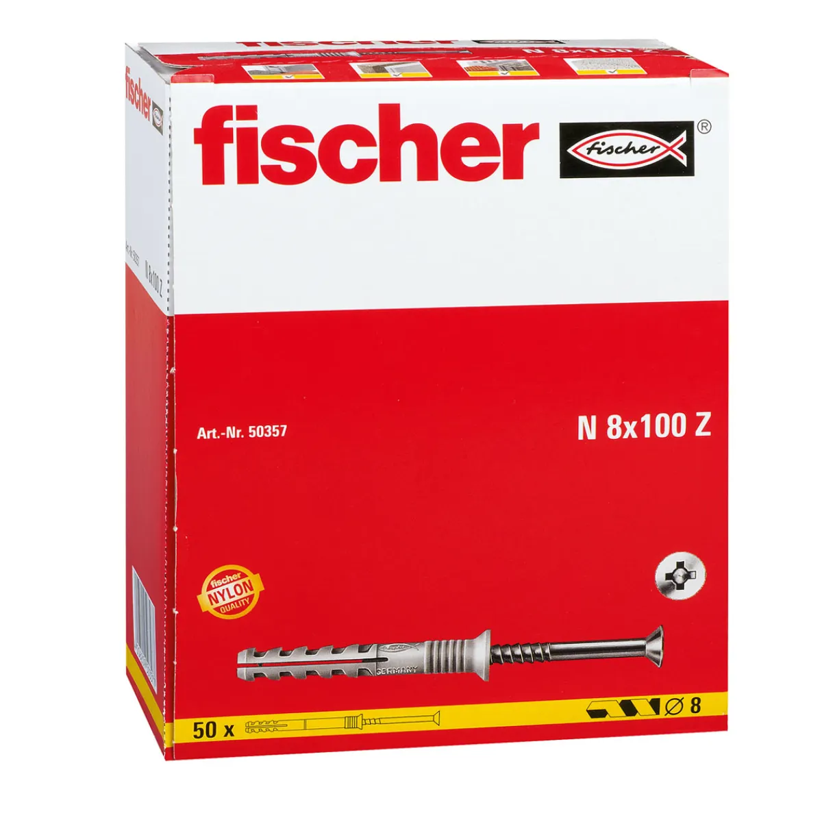 - Fischer Nageldübel mit einer Länge von 100 mm und einem Durchmesser von 8 mm