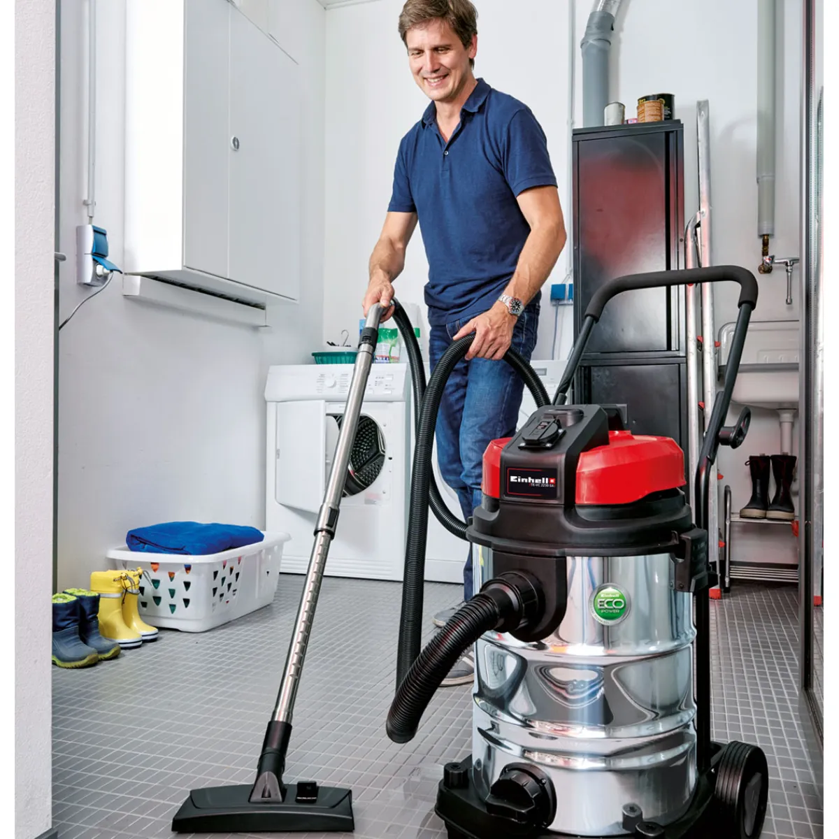 Der Einhell Nass-Trockensauger TE-VC 2230 SA ist ein leistungsstarkes Gerät mit einem großen Behältervolumen und einer hohen Saugleistung. Dank seines robusten Edelstahlgehäuses ist er besonders langlebig und eignet sich sowohl für den Einsatz im Haushalt als auch in der Werkstatt. Mit dem umfangreichen Lieferumfang sind Sie bestens ausgestattet und können sofort mit dem Reinigen beginnen.