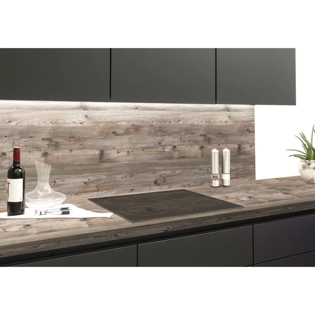 Nischenrückwandplatte Sonoma Eiche, beidseitig verwendbar, pflegeleichter Fliesenersatz, hohe Kratzbeständigkeit und Stoßbeanspruchung.