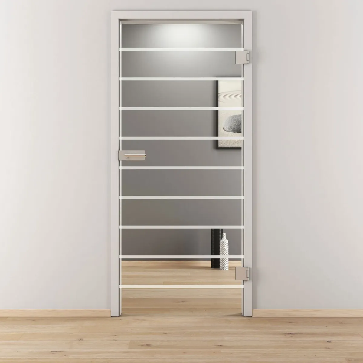 - Dekorative Streifen verleihen der Glastür einen Hauch von Eleganz ohne überladen zu wirken.
