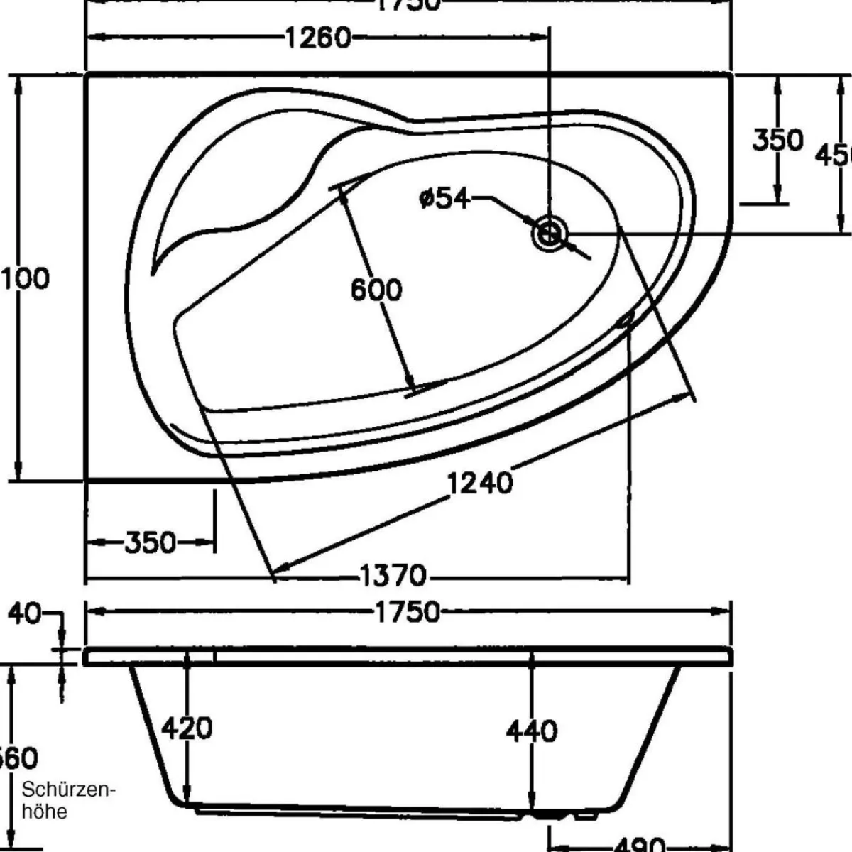 Ottofond Eckwanne Loredana Mod B 1750 x 1100 mm weiß
