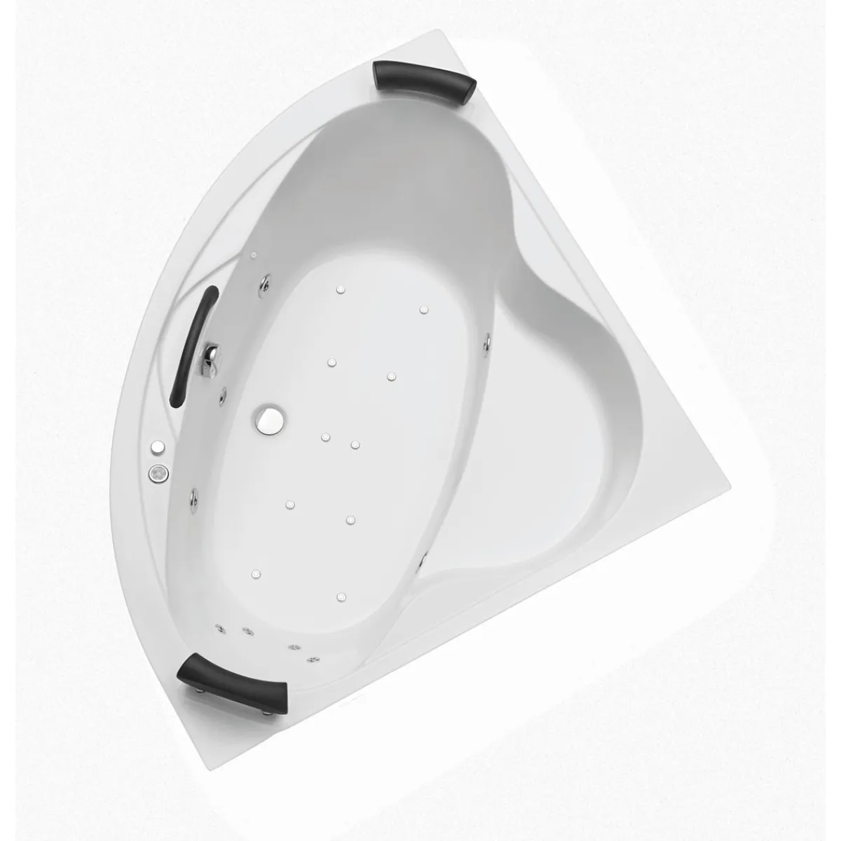 - – Elektronisches Bedienteil, Ab- & Überlaufgarnitur, 1 LED-Farblichtscheinwerfer, 1 Griff, 2 Nackenstützen enthalten