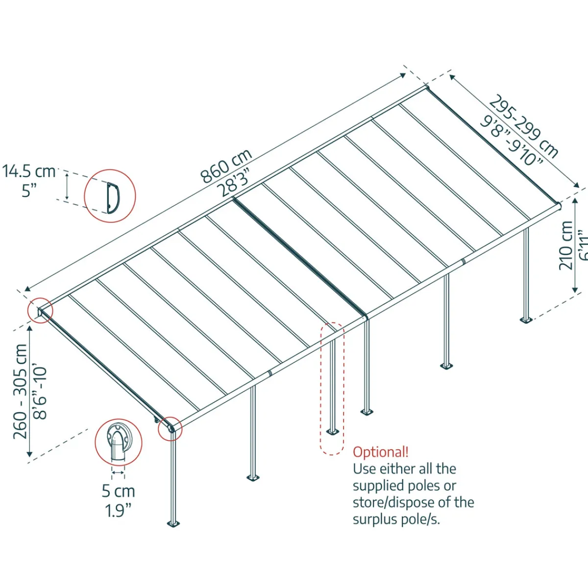 Palram Canopia Capri Alu Terrassenüberdachung Polycarbonat 3×8,6 m grau