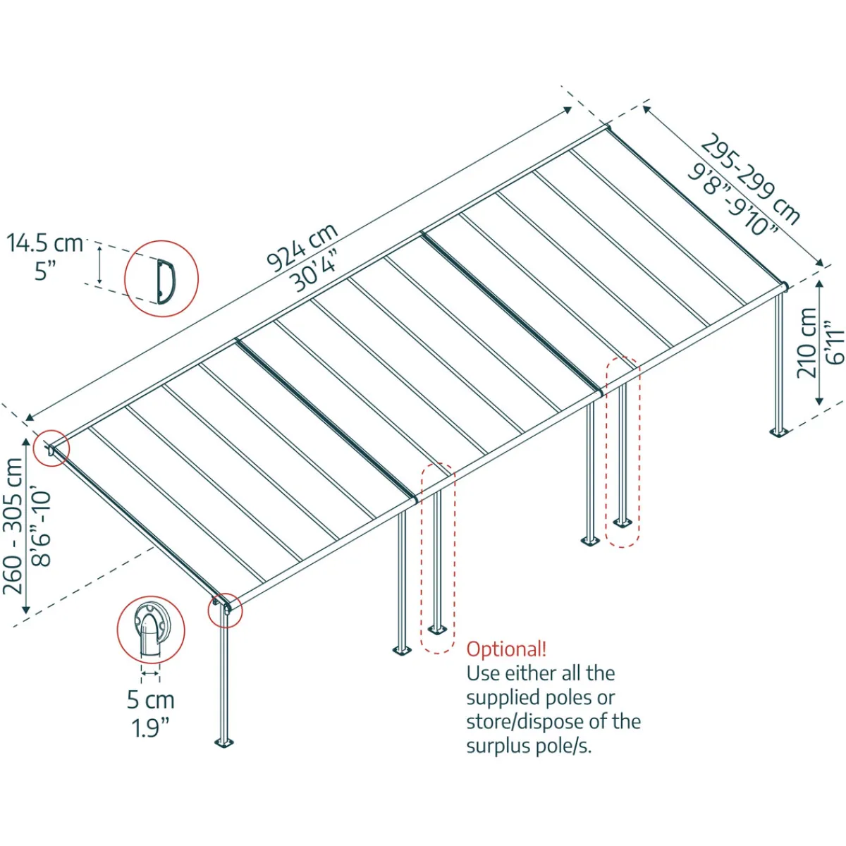Palram Canopia Capri Alu Terrassenüberdachung Polycarbonat 3×9,2 m grau
