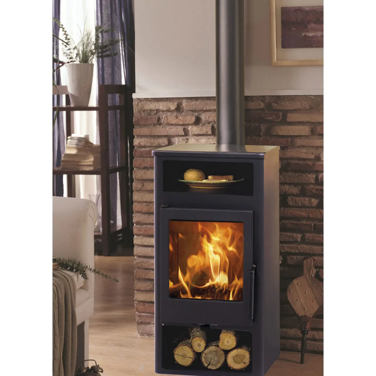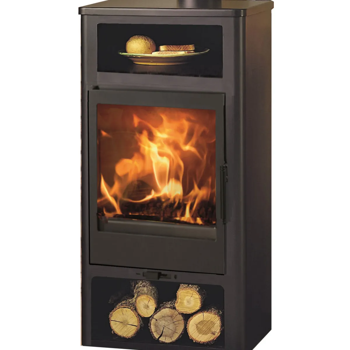 Mit dem Panadero Kaminofen SWAN Ecodesign holen Sie sich nicht nur eine zuverlässige Wärmequelle ins Haus, sondern auch ein stilvolles Möbelstück. Der schwarze Stahlkorpus mit Metallic-Effekt verleiht dem Ofen eine moderne Optik, während das integrierte Holzfach für eine gemütliche Atmosphäre sorgt.