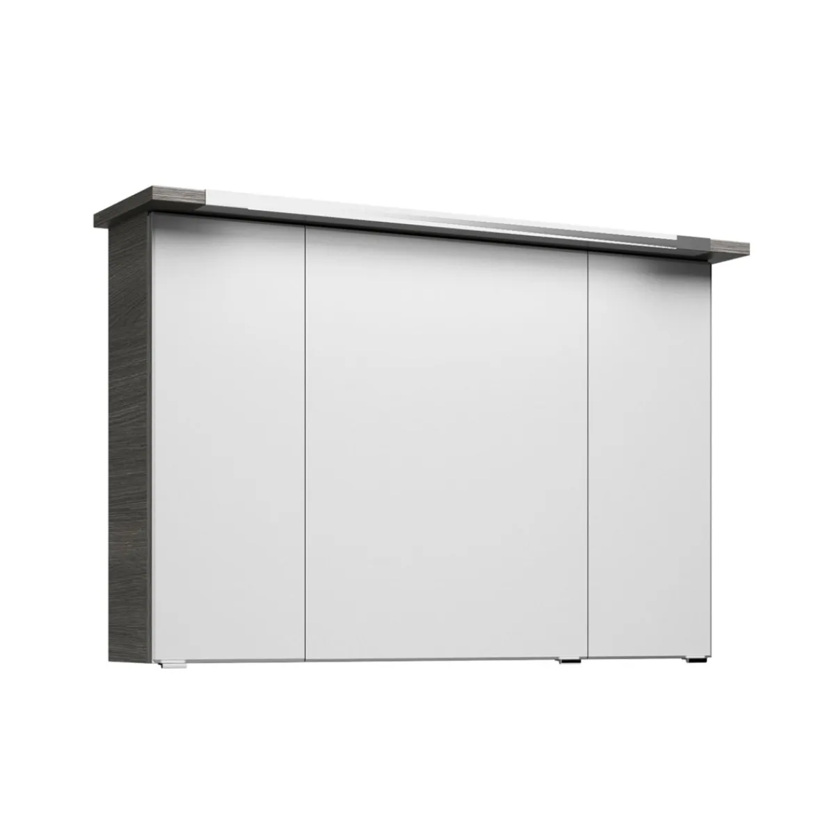 - Ausstattung: 3 Spiegeltüren, 6 Glaseinlegeböden, LED-Leuchte im Kranzboden, Schalter/Steckdose