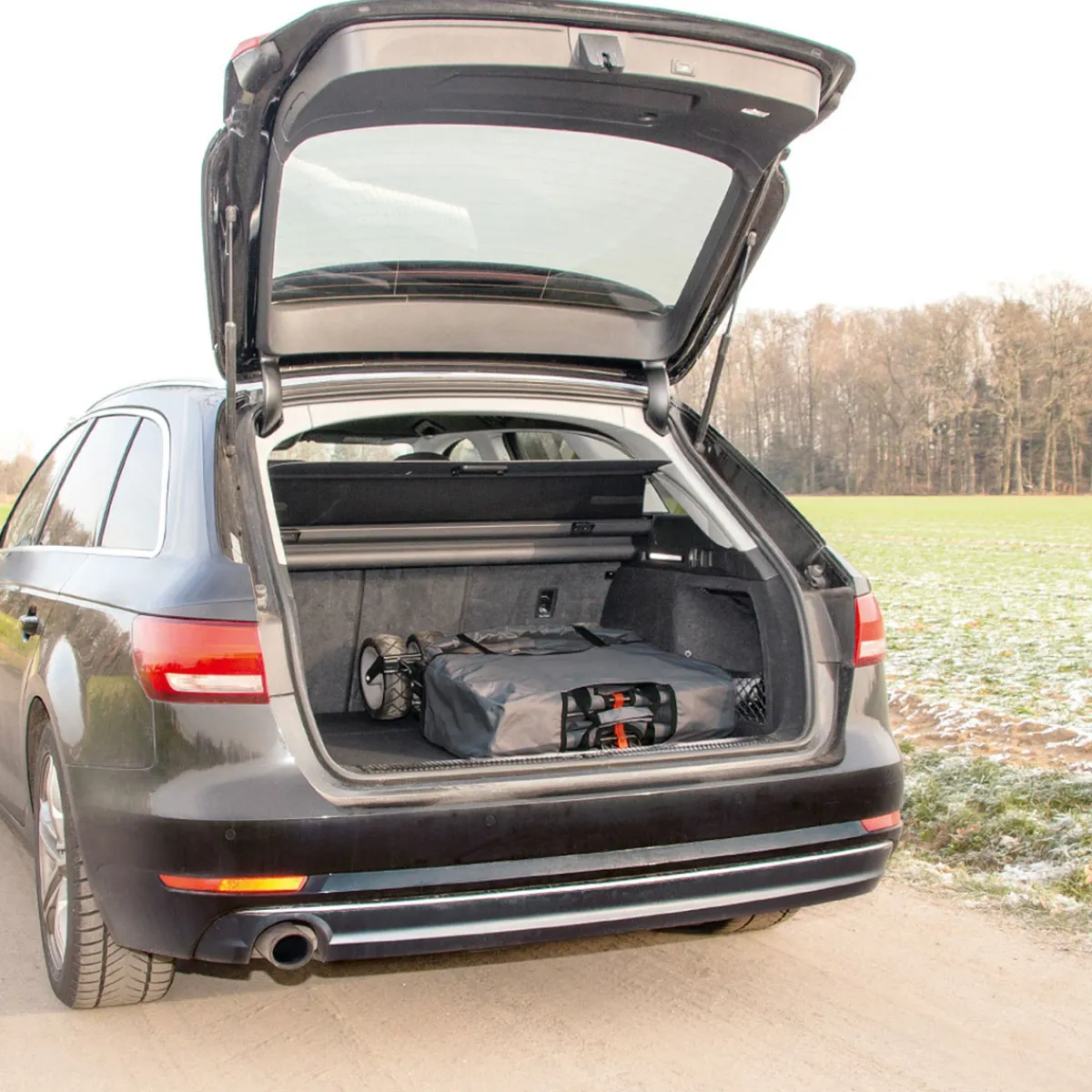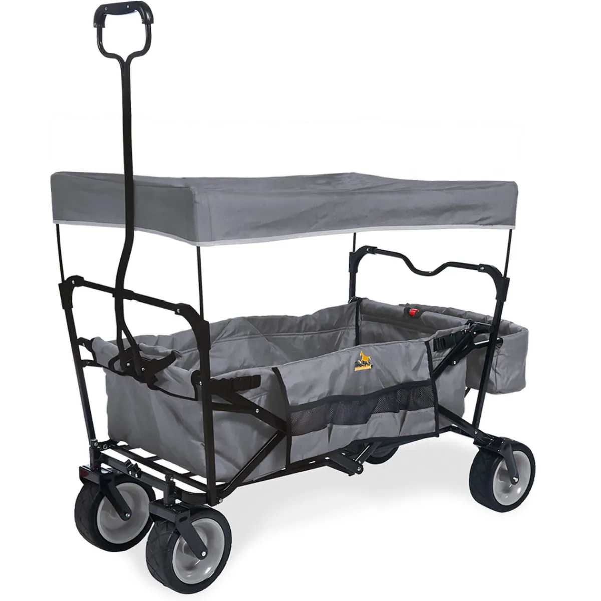 Der Bollerwagen lässt sich mit nur wenigen Handgriffen platzsparend zusammenfalten. In der praktischen Tragetasche verstaut, kann er bei einem Gewicht von nur 11 kg problemlos mitgenommen werden und passt selbst in den kleinsten Kofferraum