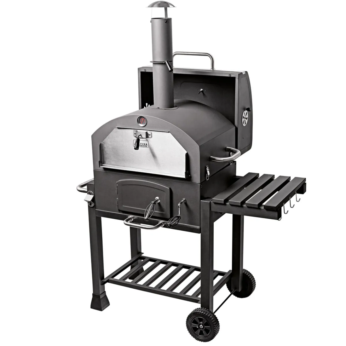 Wer auf der Suche nach einem hochwertigen und funktionalen Aufsatz für den eigenen Grill ist, sollte unbedingt zum Pizzaofen-Aufsatz Orlando XXL greifen. Mit seiner robusten Konstruktion aus pulverbeschichtetem Stahlblech und dem verchromten Grillrost gelingen perfekte Pizzen im Handumdrehen. Der Dampfabzug rundet das Backergebnis ab und sorgt dafür, dass jeder Bissen zu einem wahren Genuss wird. Also worauf warten Sie noch? Bestellen Sie jetzt den Pizzaofen-Aufsatz Orlando XXL und machen Sie Ihre nächste Grillparty zu einem echten Highlight!