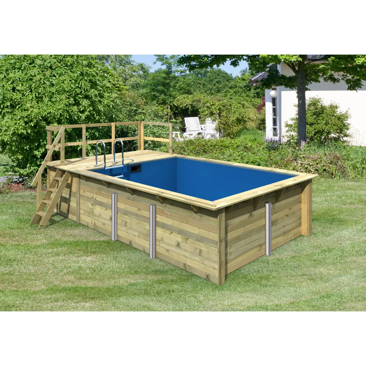 - Extras: Eine Terrasse inklusive Edelstahlleiter und Holztreppe