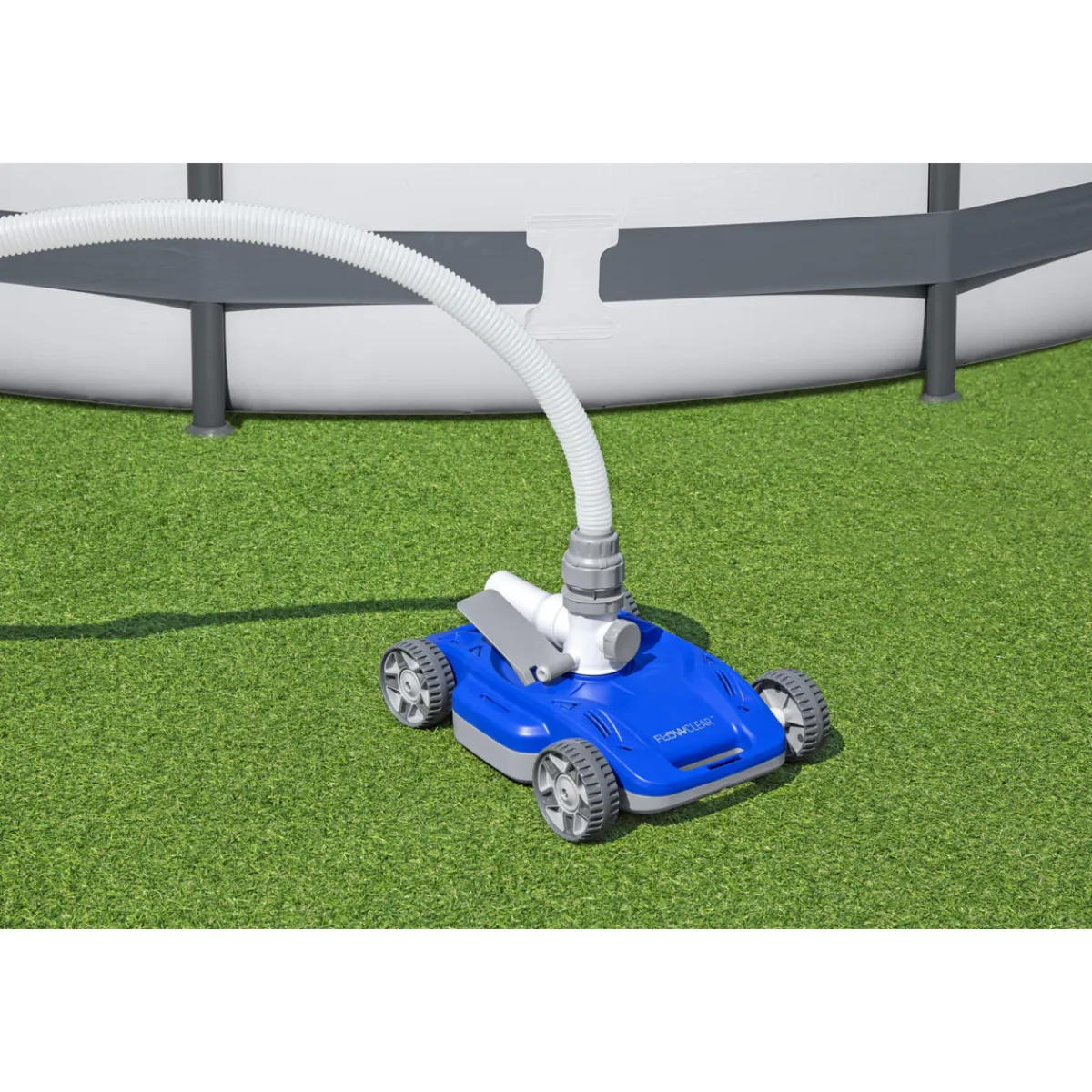 - Mithilfe von Schläuchen und Adaptern ist der Bestway Poolreiniger für alle Pools mit flachen Böden bis 35m² geeignet.