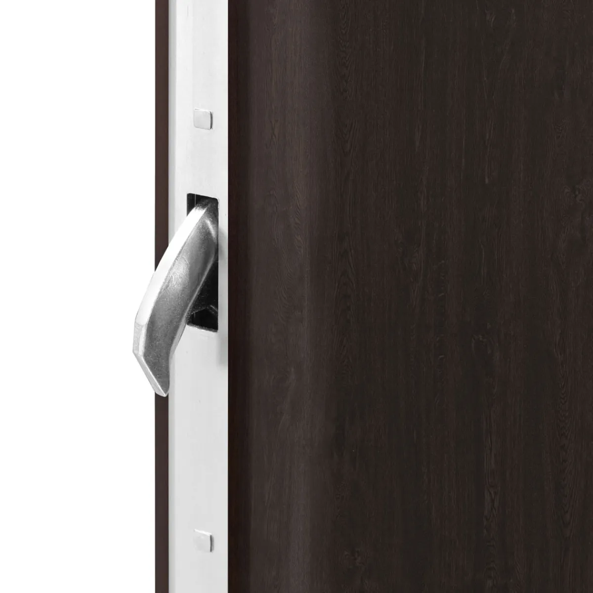 Die SplenDoor Premium-Haustür Passivedoor Bergen in nussbaumfarbenem Aluminium-Stahl bietet ein modernes Design sowie hohe Sicherheit durch ihre Verriegelung mit Markenschloss von Winkhaus. Dank ihrer energiesparenden Eigenschaften trägt sie zur Reduzierung des Energieverbrauchs bei. Die einfache Montage durch werkseitig vorgebohrte Dübelbohrungen macht den Einbau zum Kinderspiel. Eine ideale Wahl für jeden Kunden auf der Suche nach einer langlebigen Haustür mit Stil.