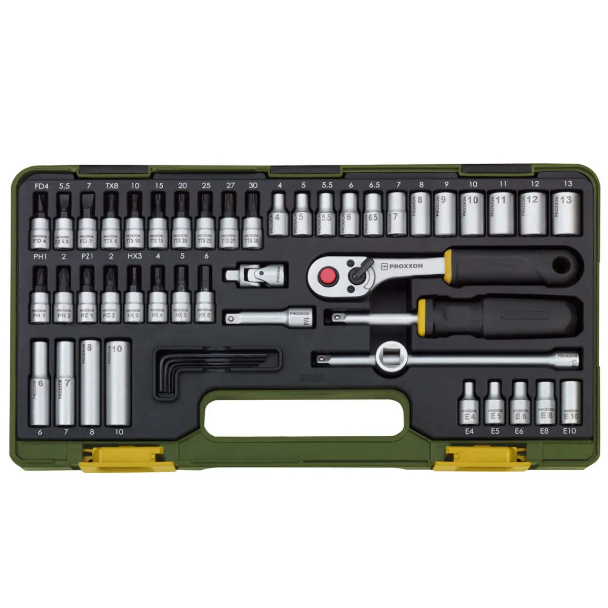 Proxxon Industrial Steckschlüssel-Satz mit Knüppelratsche 1/4 Zoll 50-teilig