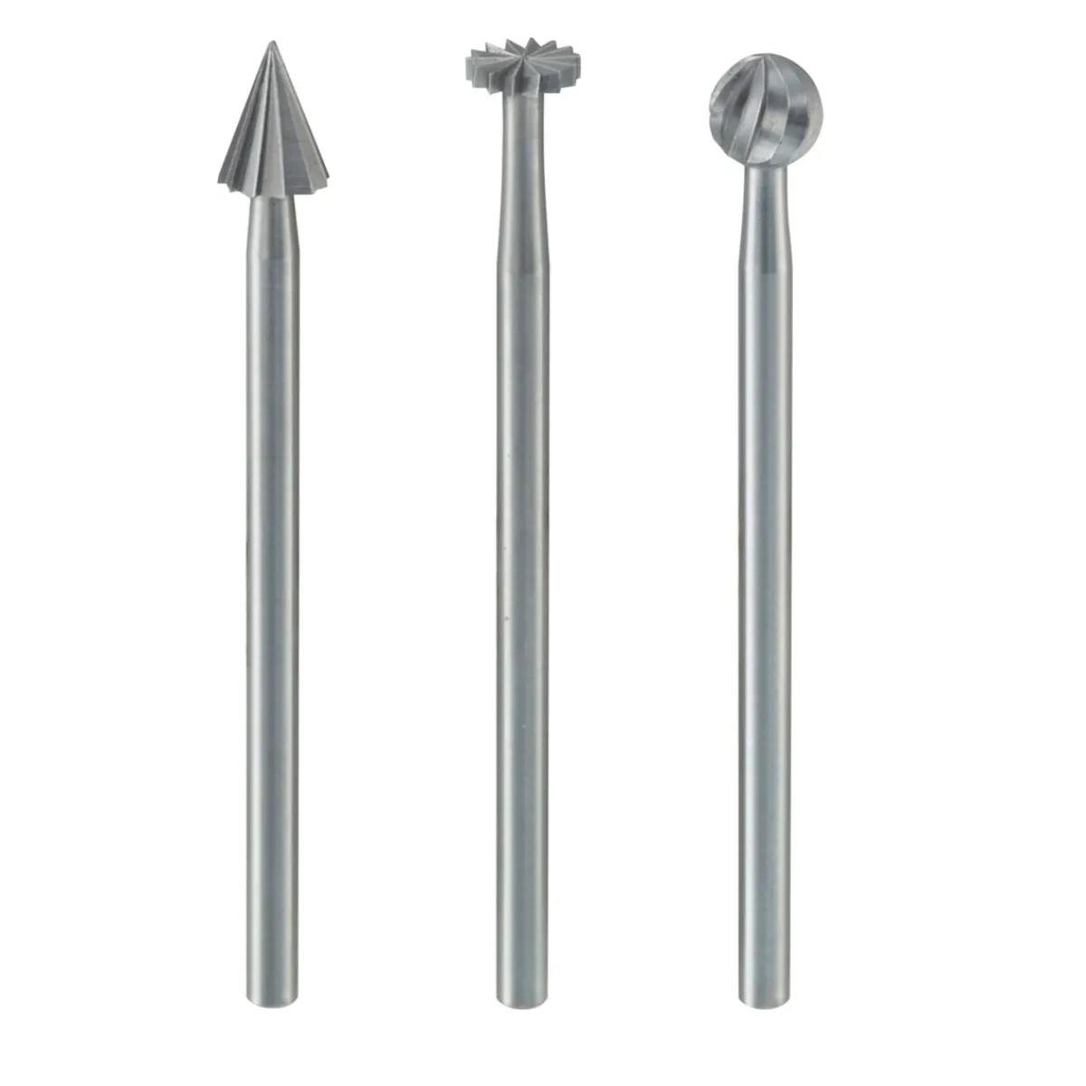 - Inhalt: 3 Frässtifte (Fräskörper Kugel: 2,3 mm; Fräskörper Rad: 3,1 mm; Fräskörper Kegel: 2,3 mm)