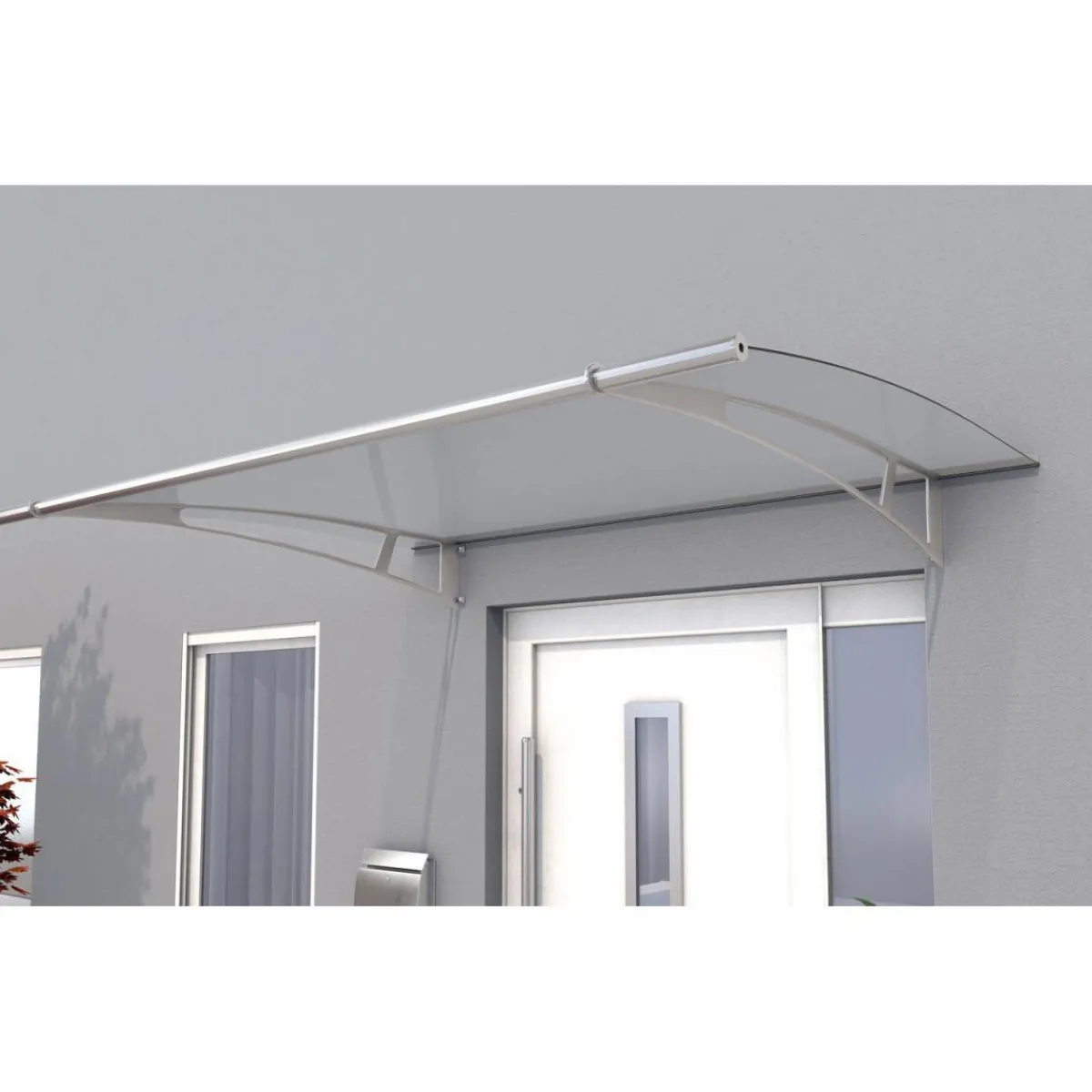 Das filigrane Design verleiht Ihrem Eingang einen neuen Touch und fügt sich dank seines zeitlosen Designs harmonisch in das Gesamtbild ein. Hochwertige Edelstahlhalterungen sorgen für eine stabile Konstruktion, die in Kombination mit der witterungs- und UV-beständigen Acrylglasabdeckung vor Regen, Wind und Schnee schützt. Material: Träger aus Edelstahl mit integrierter Regenrinne aus silber eloxiertem Aluminium, Abdeckung aus 4 mm transparentem Acrylglas, vormontiert, inkl. komplettem Montagezubehör, Maße: 205x95x17 cm (BxTxH)