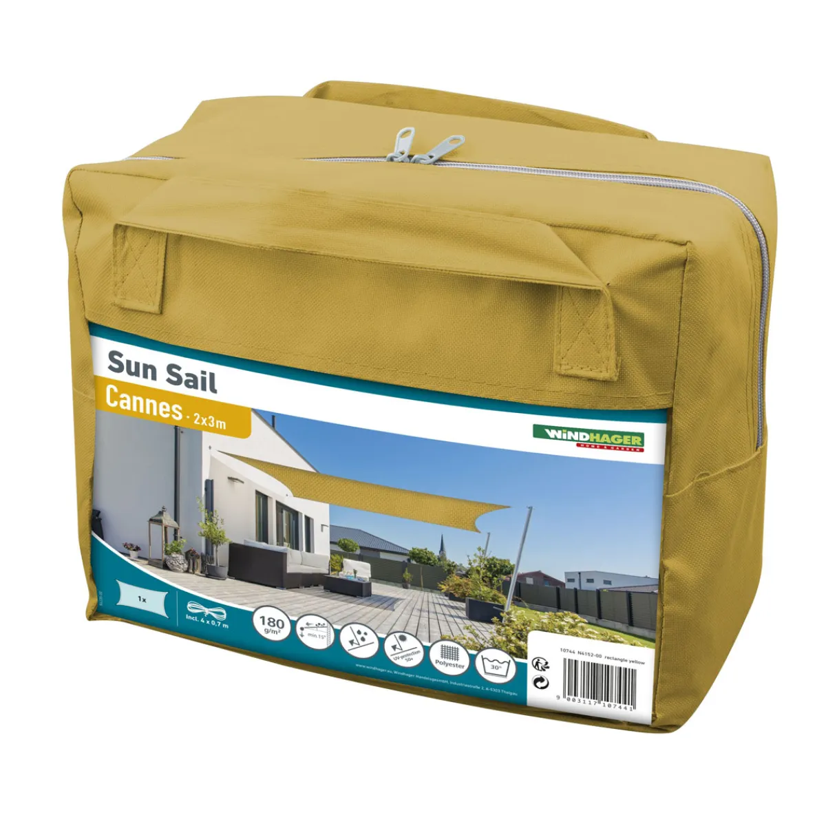 Rechteck-Segel Cannes 2 x 3 m gelb – Schattenspender für Balkon, Garten und Terrasse