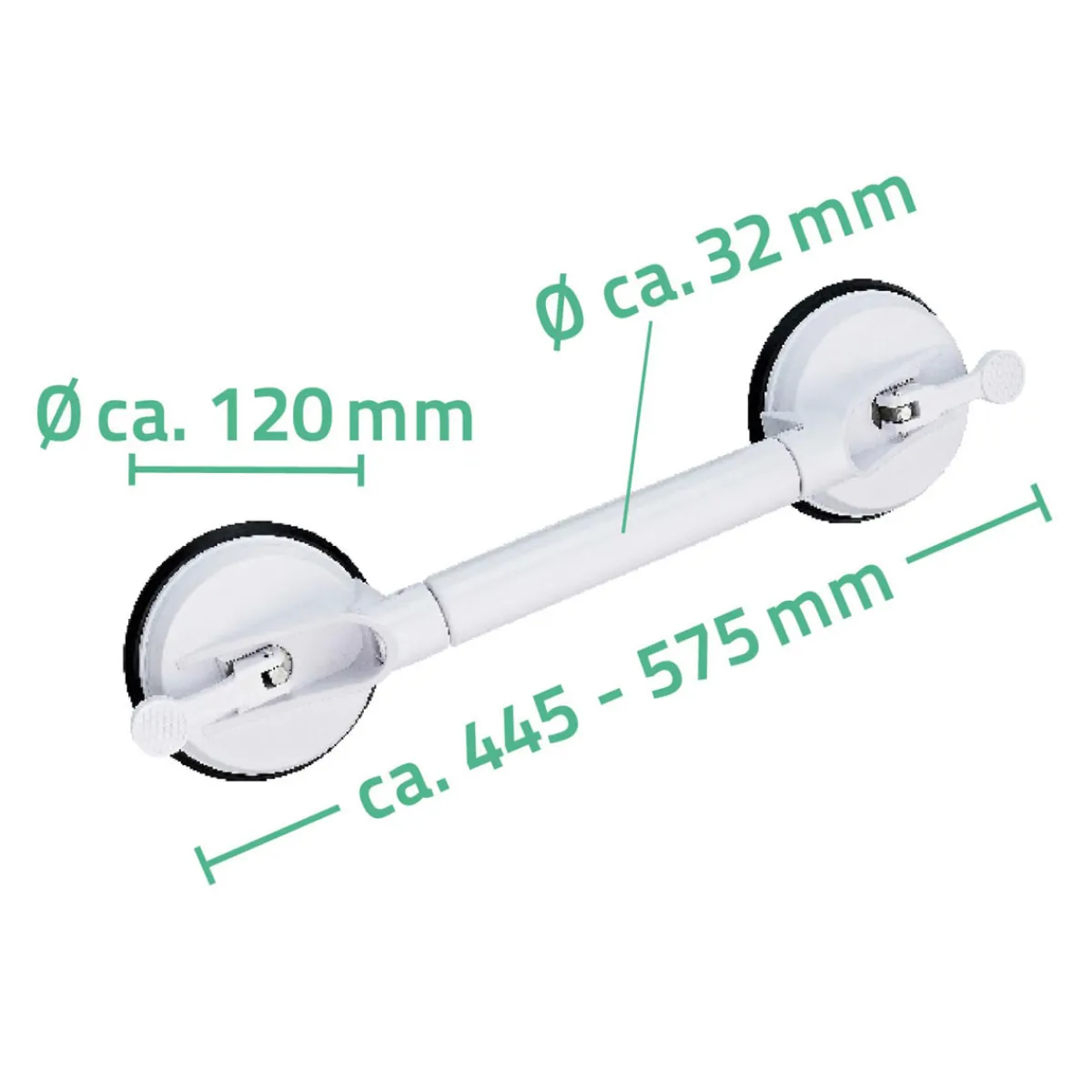 Der Ridder Reisesauggriff ist ein zuverlässiger Begleiter für alle, die auch unterwegs nicht auf Sicherheit im Bad verzichten möchten. Die teleskopierbare Funktion bietet Flexibilität bei der Anbringung und die ergonomischen Griffleisten sorgen für einen festen Halt. Mit einer Belastbarkeit von bis zu 100 kg ist er zudem äußerst stabil und sicher in der Anwendung.