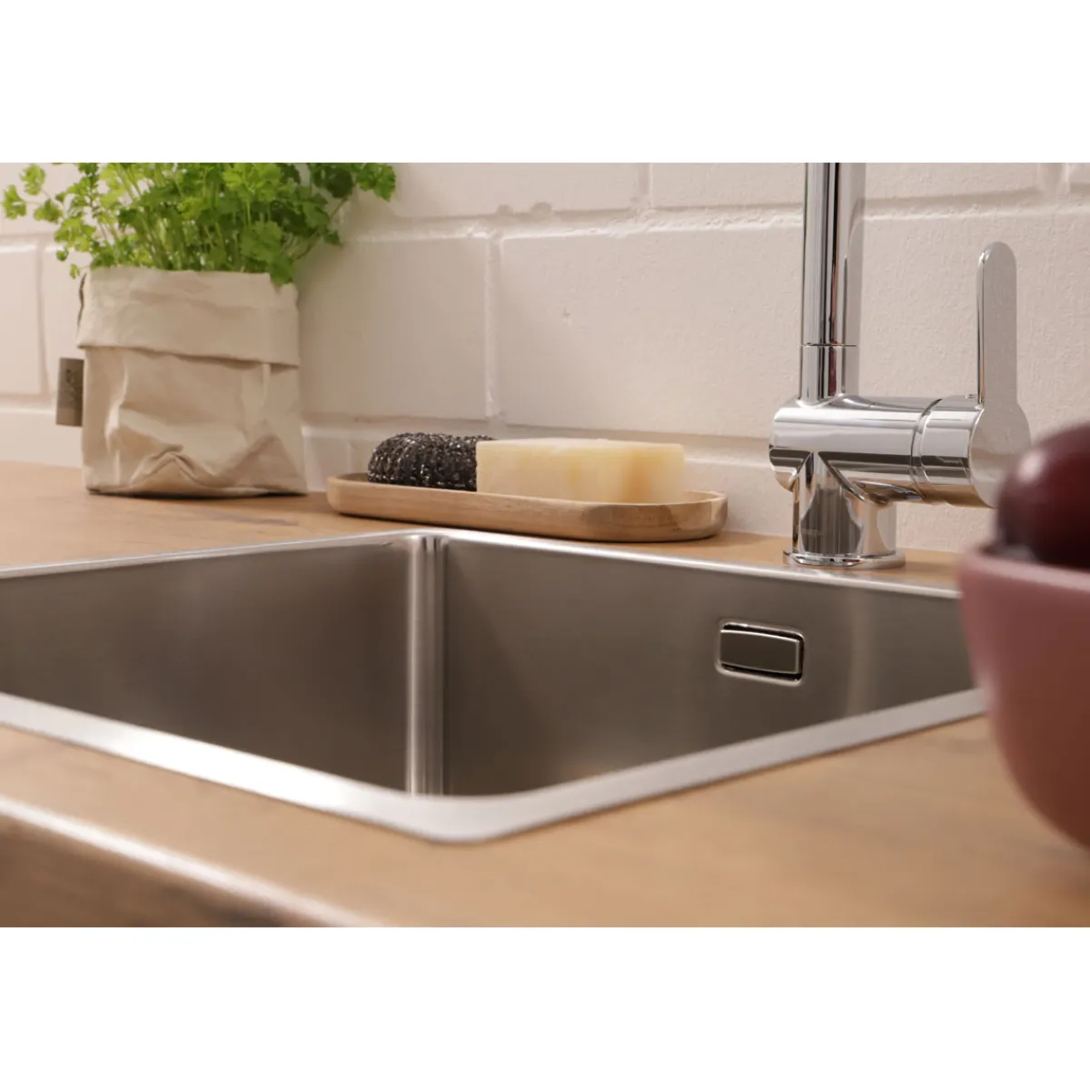 - Hochwertiges Edelstahl-Einzelbecken inpuristischem Design
