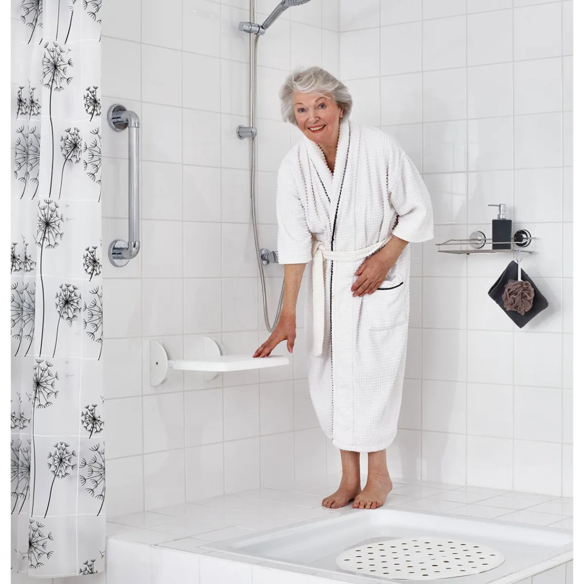 Der Ridder Duschklappsitz Max weiß ist ideal für alle Personen geeignet, die beim Duschen auf zusätzliche Sicherheit achten möchten. Besonders ältere Menschen oder Personen mit körperlichen Einschränkungen profitieren von dem praktischen Klappsitz.