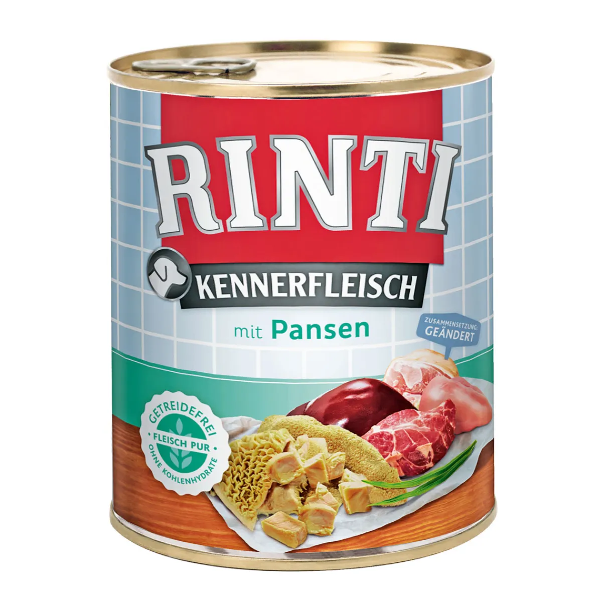 Pansen pur – 100% grüner Pansenneu mit Flachsöl und Ballaststoffen verfeinertKennerfleisch ist reich an natürlichen Fleischstückeneine schnittfeste Vollnahrungohne Formfleisch – ohne Fleischmehle – ohne tierische Nebenerzeugnisseohne Soja – ohne Farbstoffe – angereichert mit Vitaminen/Mineralstoffenin der praktischen 400g Ringpull-Dose und vielen weiteren Sorten