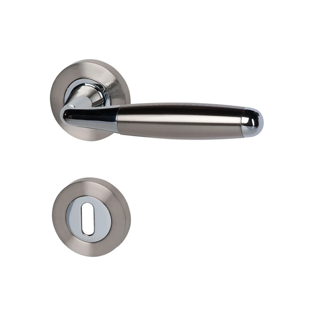 Mit der Alpertec Rosettengarnitur Solid 8-R in Chrom poliert und edelstahlfärbig satiniert setzen Sie auf eine moderne und stilvolle Variante für Ihre Zimmertüren. Die hochwertigen Materialien und die verdeckte Verschraubung sorgen für eine lange Lebensdauer.
