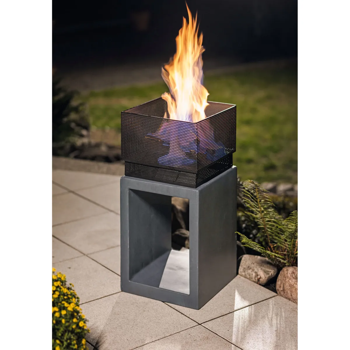 Rothmann Feuerschale Arnheim auf Podest 35 x 35 x 72 cm anthrazit