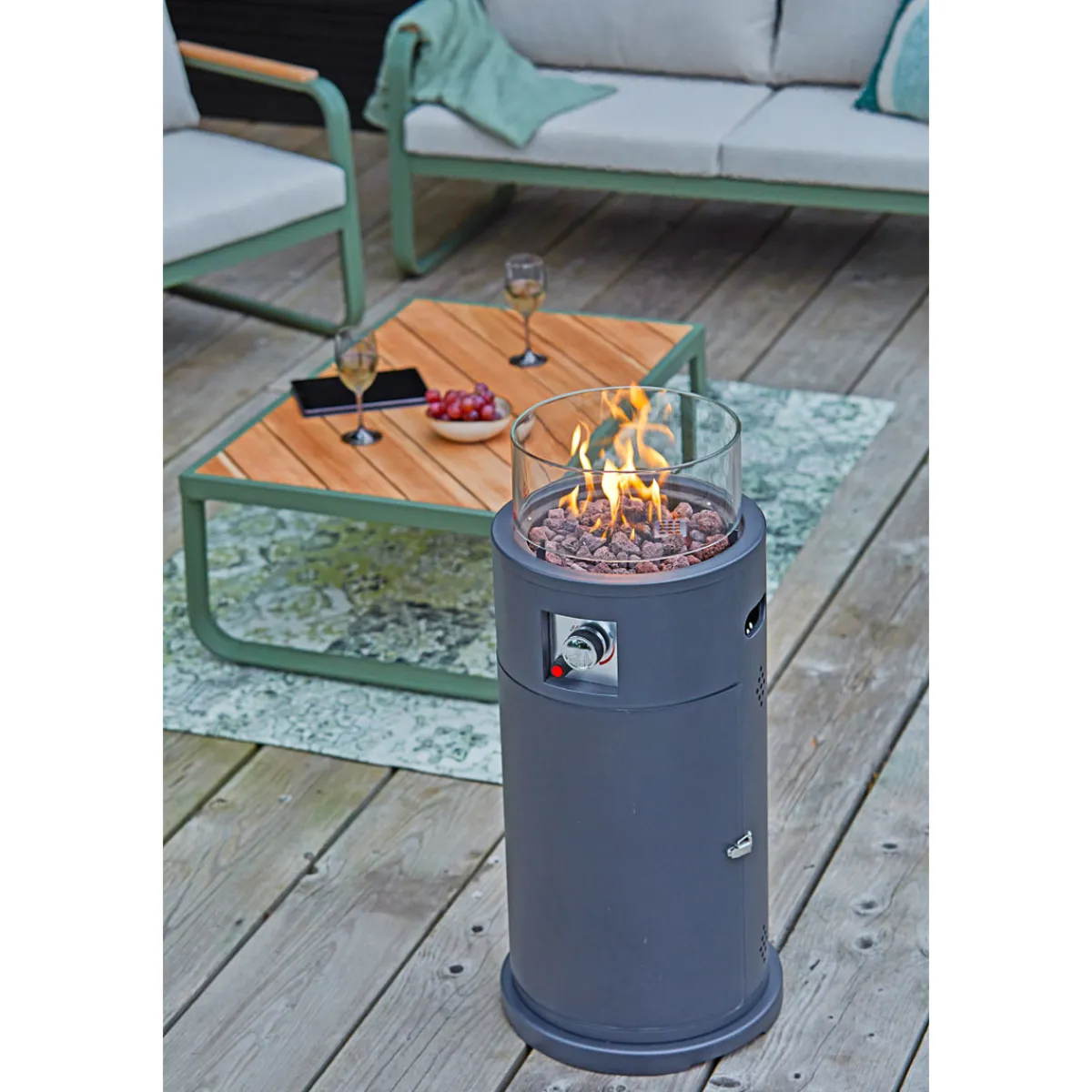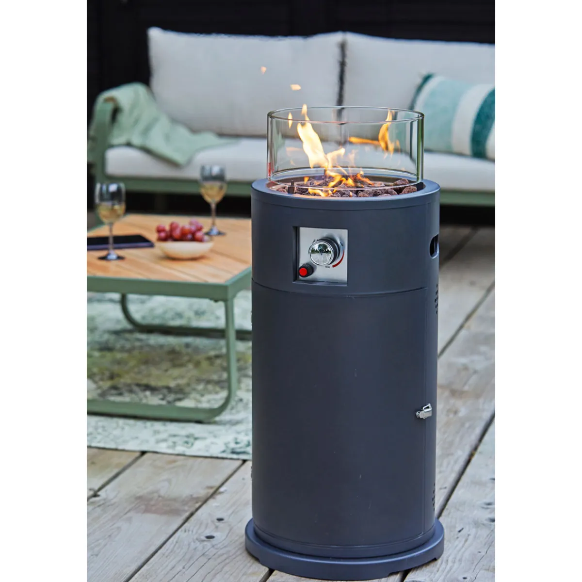 - Lieferumfang: inklusive Lavasteine, Windschutzglas, Schlauch und Regler