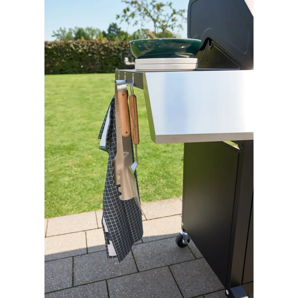 - Außenmaße des Grills (134 cm Breite x 118,5 cm Höhe x 61,5 cm Tiefe) passen perfekt in jeden Außenbereich