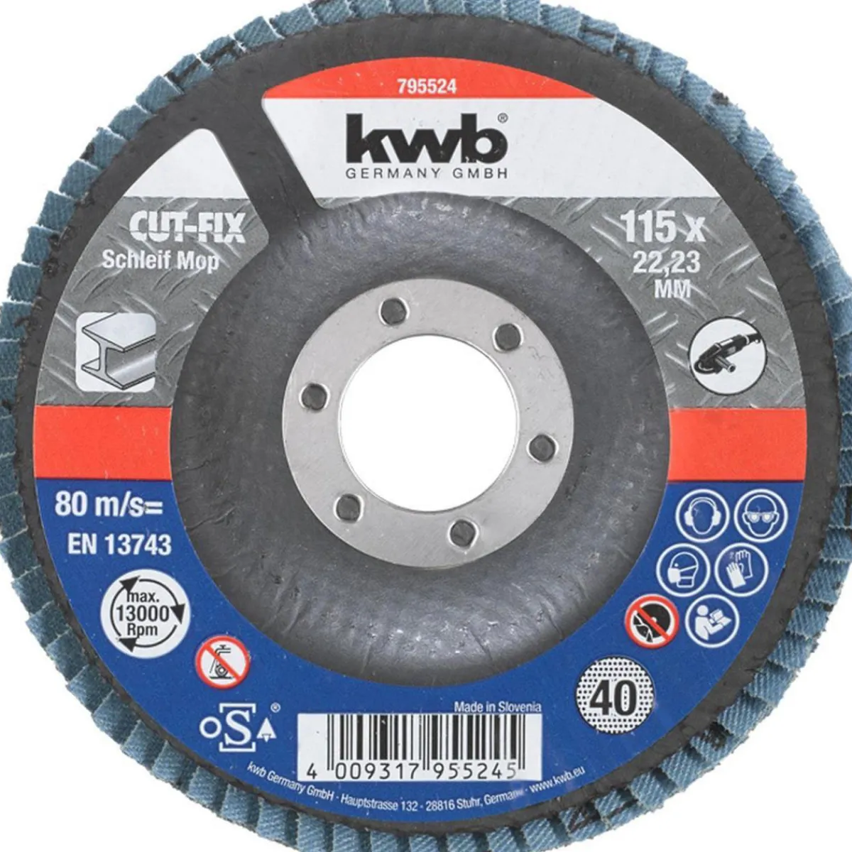 kwb Schleifmop Cut Fix Lamellenschleifteller Metallbearbeitung Durchmesser 115 mm K40