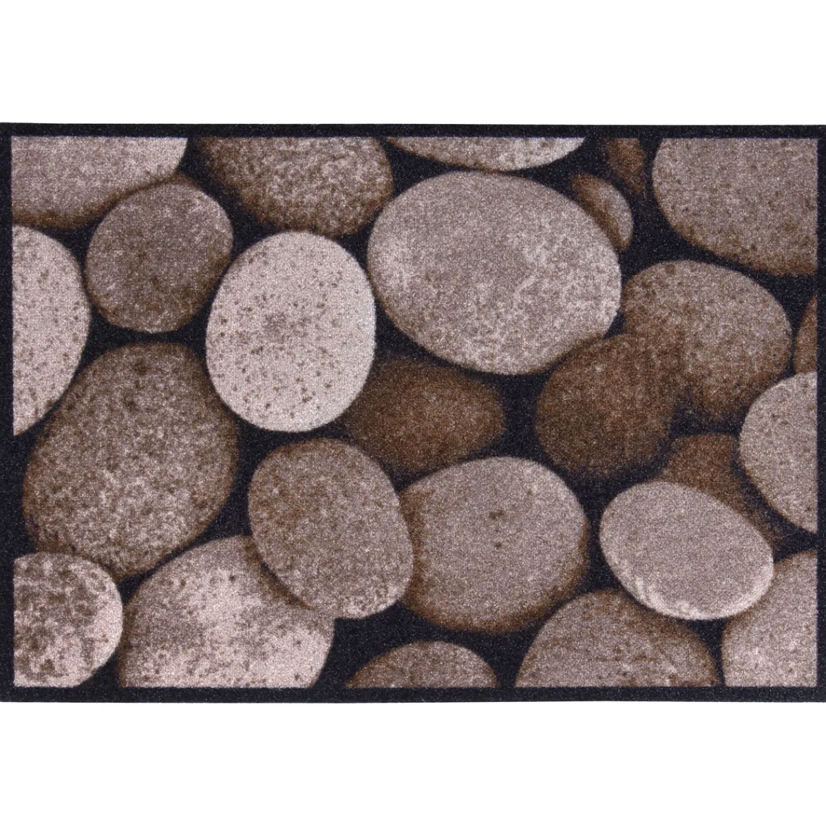 - Die Grundfarbe der Matte ist beige, während das Muster in Taupe gehalten ist.