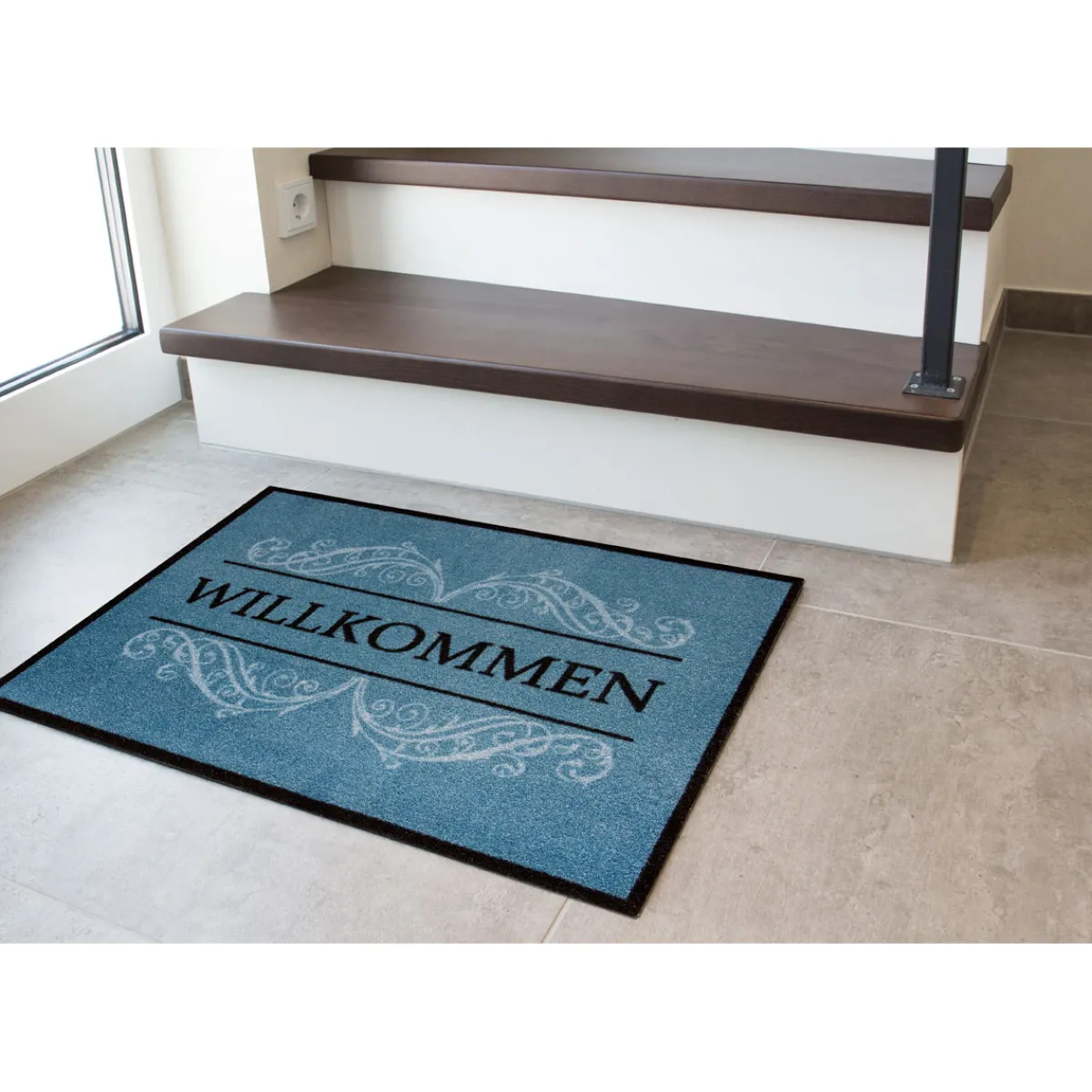 Die Schmutzfangmatte Willkommen in Blau eignet sich perfekt für alleKunden, die ihre Wohnung oder ihr Haus sauber halten möchten. Besonders praktisch ist sie für Familien mit Kindern oder Haustieren.