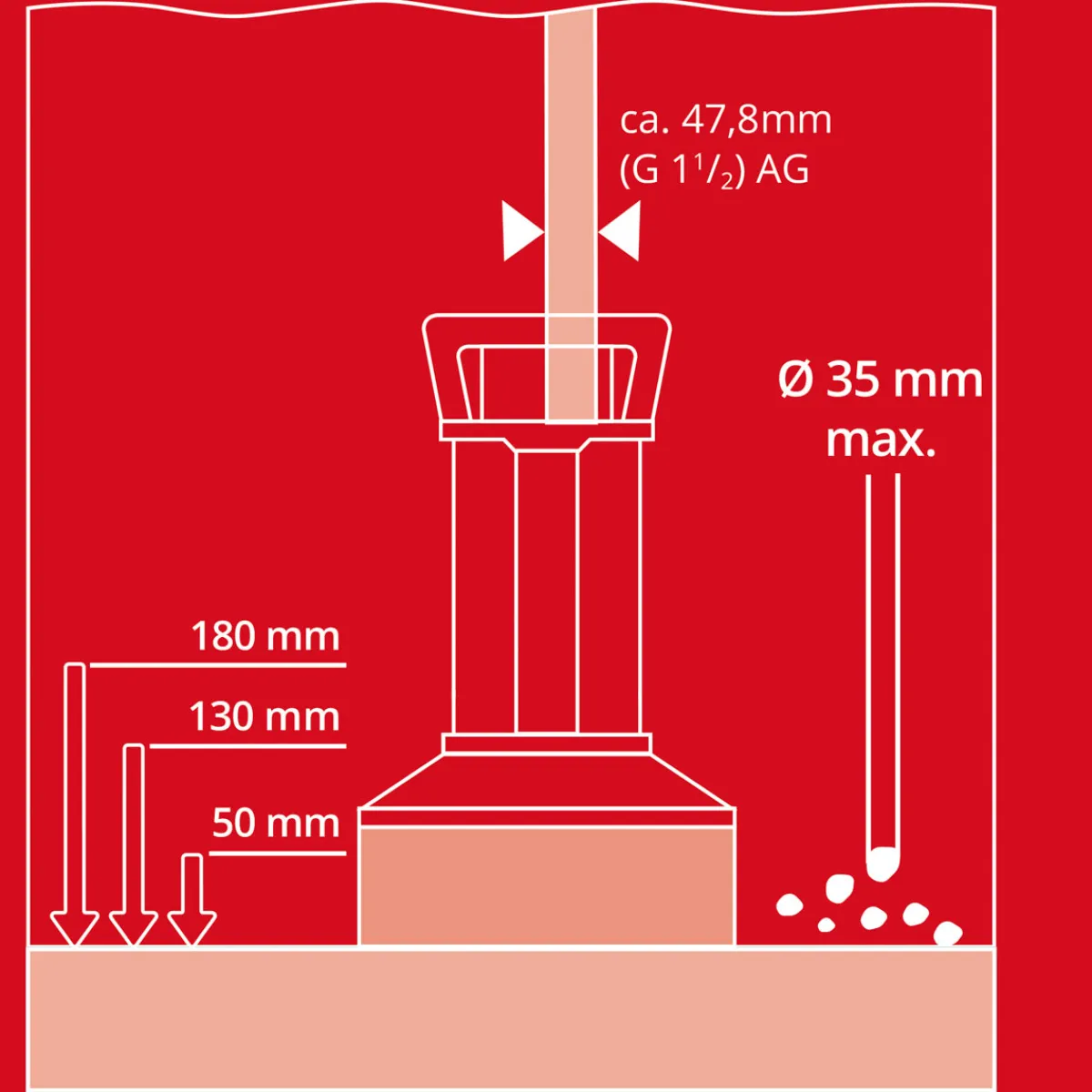 - Geeignet für Partikelgrößen bis zu 35 mm – ideal auch bei stark verschmutztem Wasser