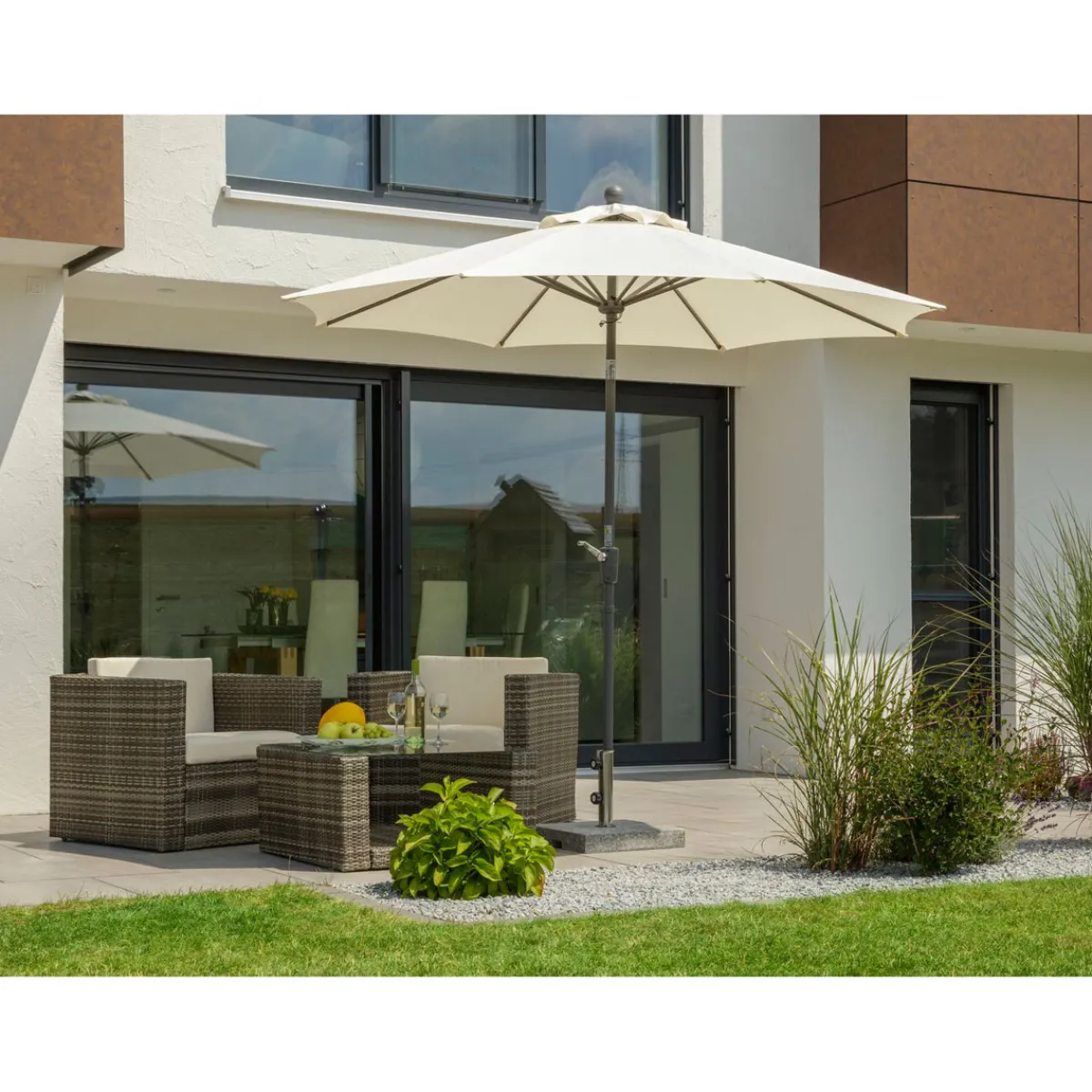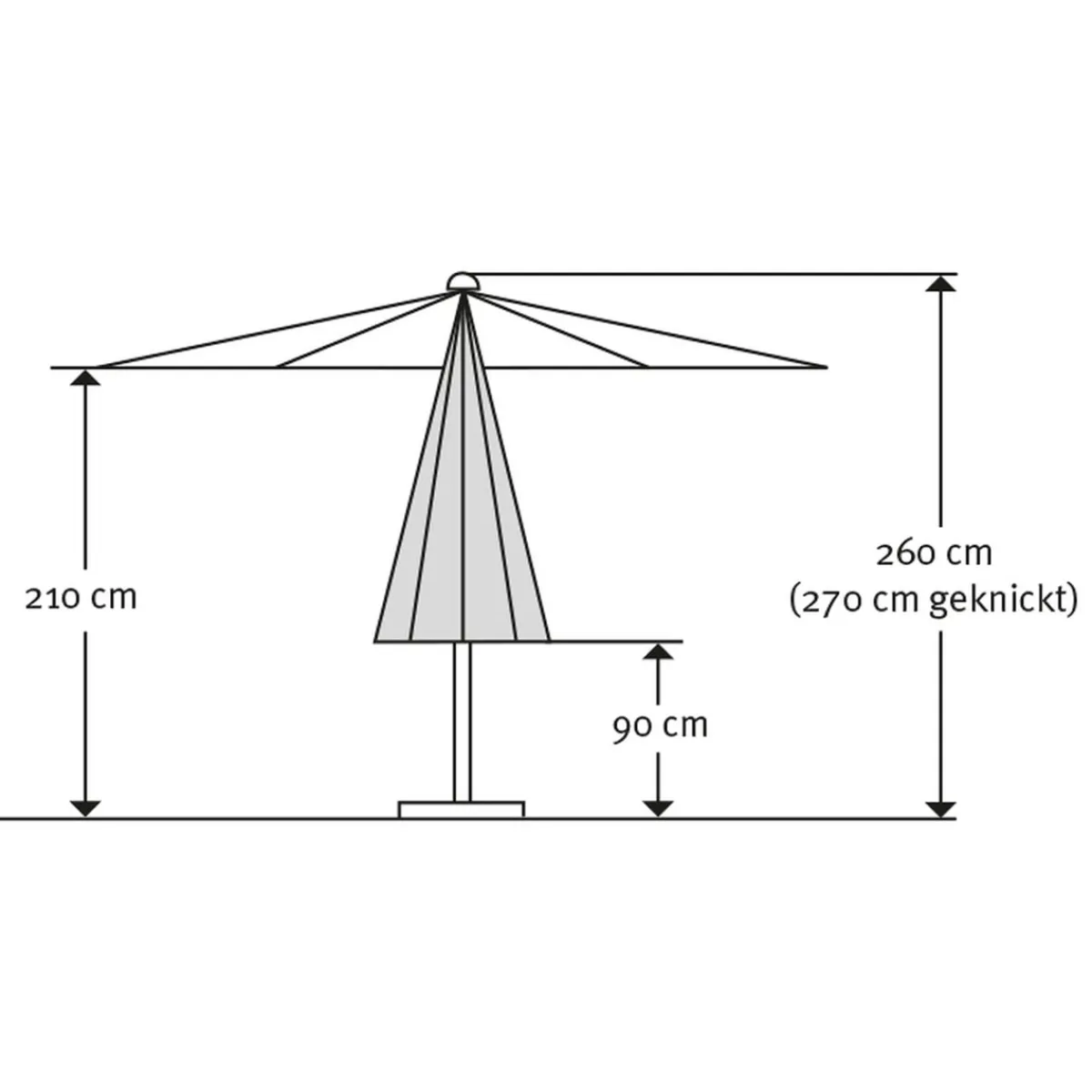 Ein großzügiger Schattenspender für jede Gelegenheit: Der Marktschirm erlöst mit seinem breiten Durchmesser von direkter Sonneneinstrahlung und es lässt sich in seinem ausgedehntem Schatten ideal entspannen oder arbeiten – je nachdem, wo Sie ihn gerade einsetzen.