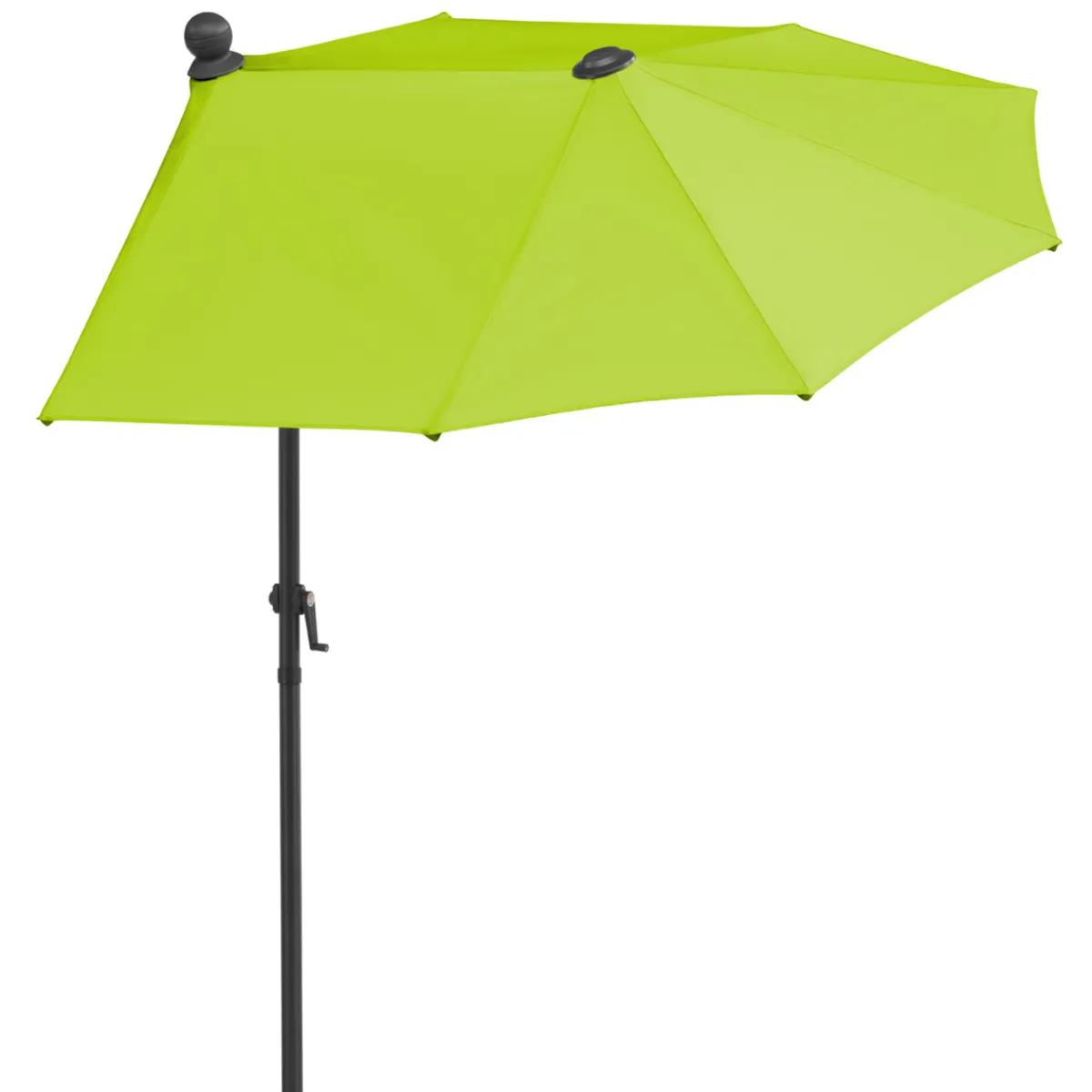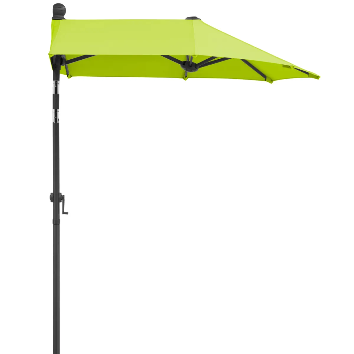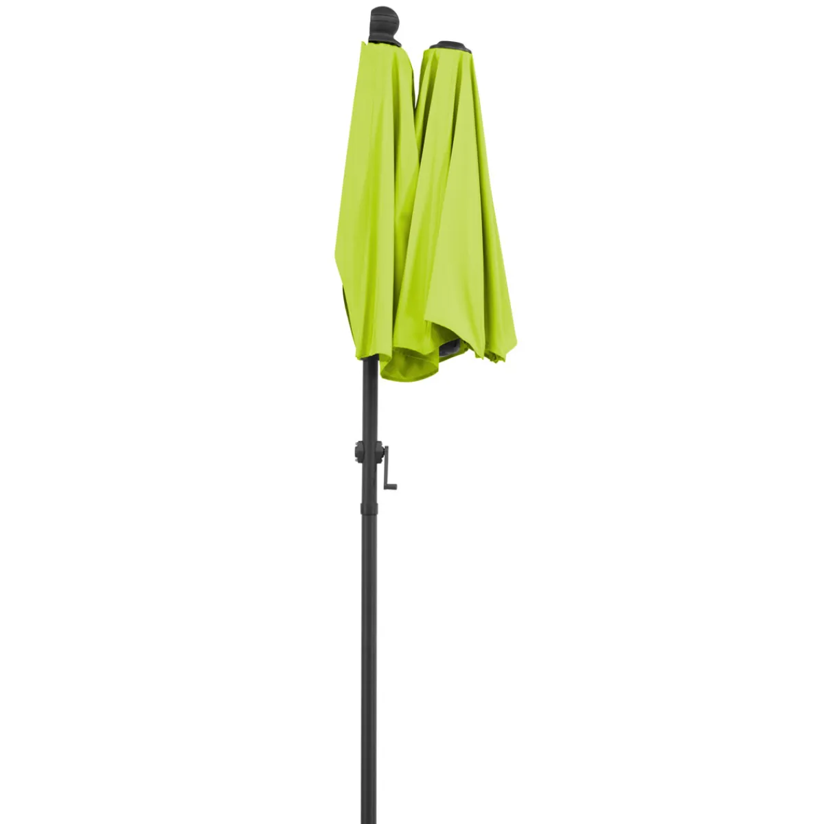 - Dank der Kurbelmechanik lässt sich der Schirm einfach öffnen, schließen und knicken. Die Höhe ist verstellbar bis zu einer Gesamthöhe von 228 cm.