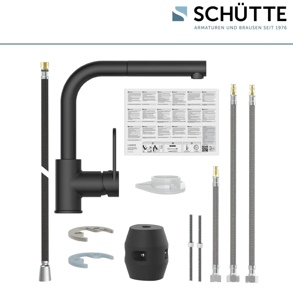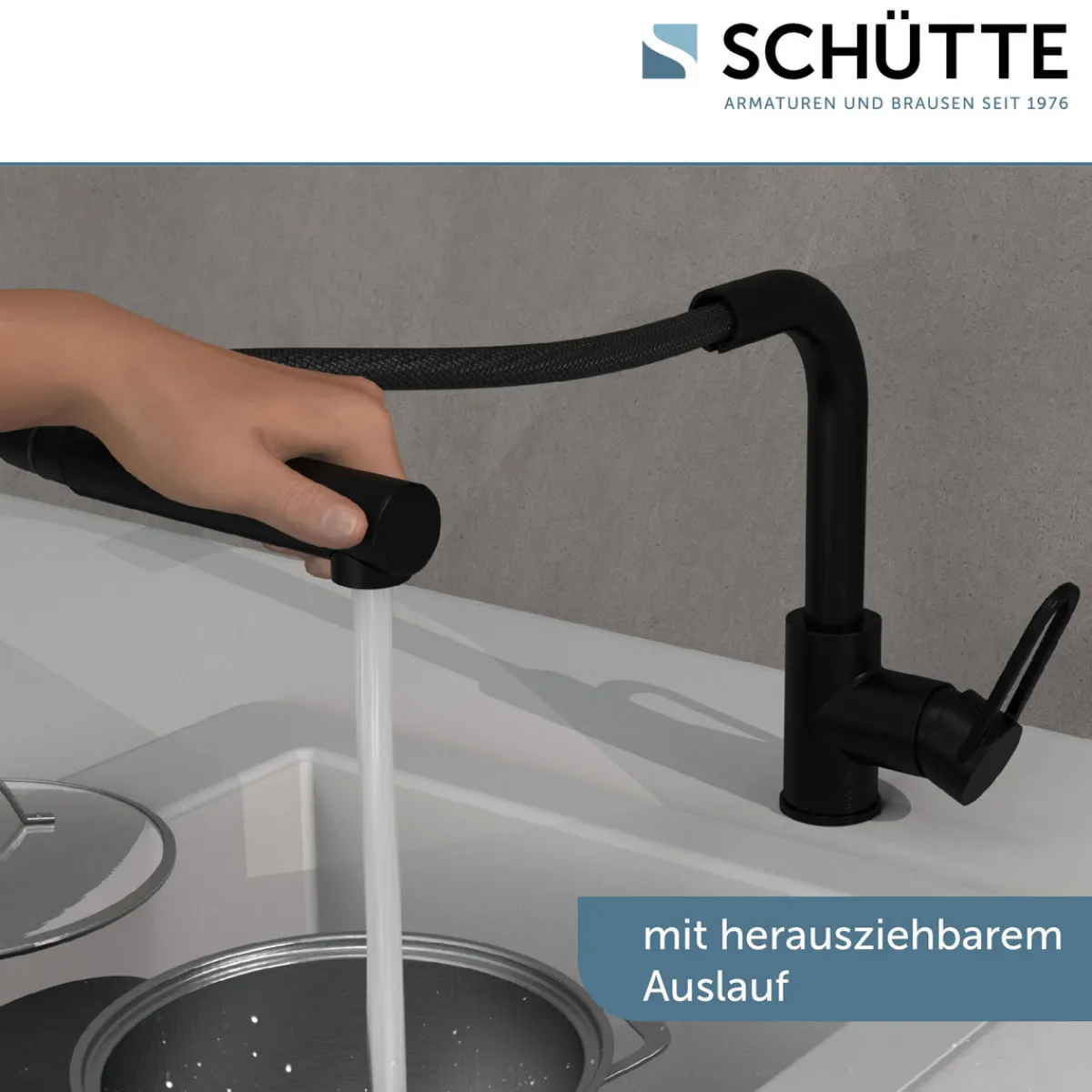 Schütte Schütte Spülarmatur Design Ring schwarz matt mit herausziehbarer Geschirrbrause