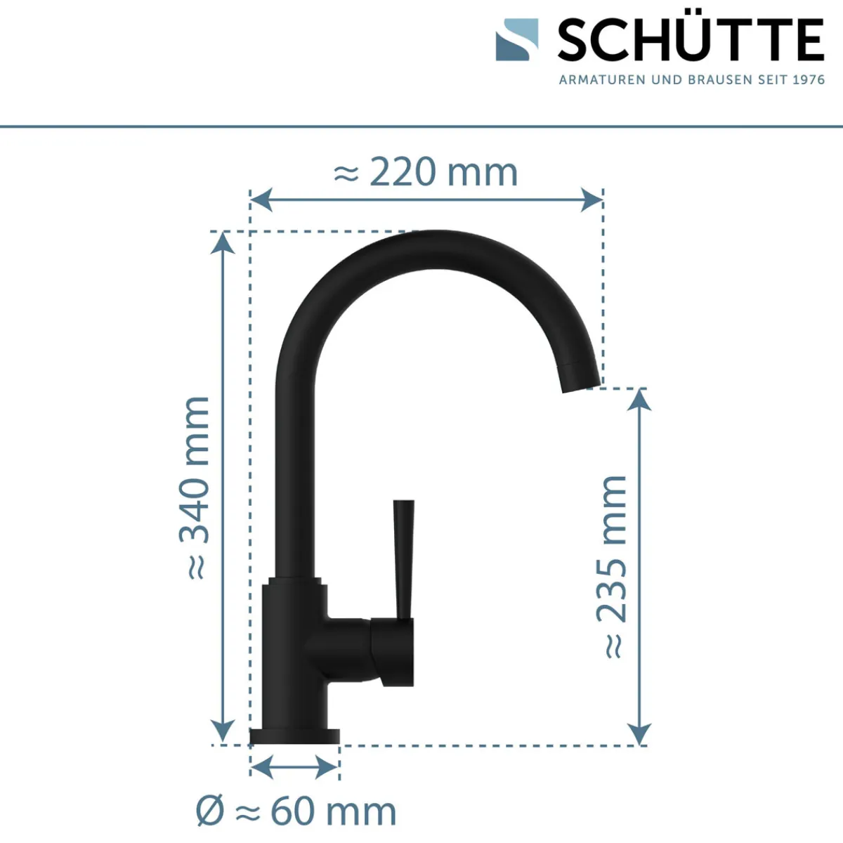 Mit der Schütte Spültischarmatur Cornwall in schwarz matt holen Sie sich eine Armatur ins Haus, die nicht nur durch ihr ansprechendes Design besticht, sondern auch durch ihre Funktionalität überzeugt. Der schwenkbare Auslauf und die Cold-Start-Funktion machen das tägliche Arbeiten in der Küche zum Vergnügen. Dank des Materials Messing und der hochwertigen Verarbeitung können Sie sich zudem auf eine lange Lebensdauer freuen.
