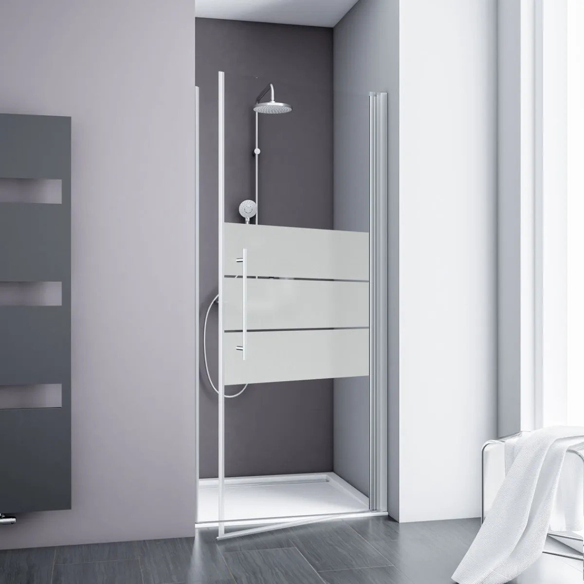 Die Drehtür in Nische der Serie Alexa Style 2.0 folgt mit seinen besonders dezenten Aluminiumprofilen einem zeitlosen Design. Dank der eleganten Teilrahmung wirkt die Glasfläche außerdem bestmöglich auf ihre Umgebung und lässt auch kleine Bäder größer erscheinen.Das 5 mm starke Sicherheitsglas (ESG) zeichnet sich durch eine besonders hohe Stabilität gegenüber Schlag-, Stoß- und Biegebelastungen aus und hält zudem auch starken Temperaturschwankungen problemlos stand.