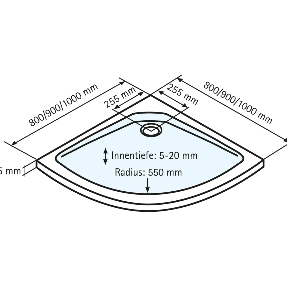 - Dank des Viertelkreis-Designs passt die Duschwanne perfekt in jede Ecke Ihres Badezimmers.