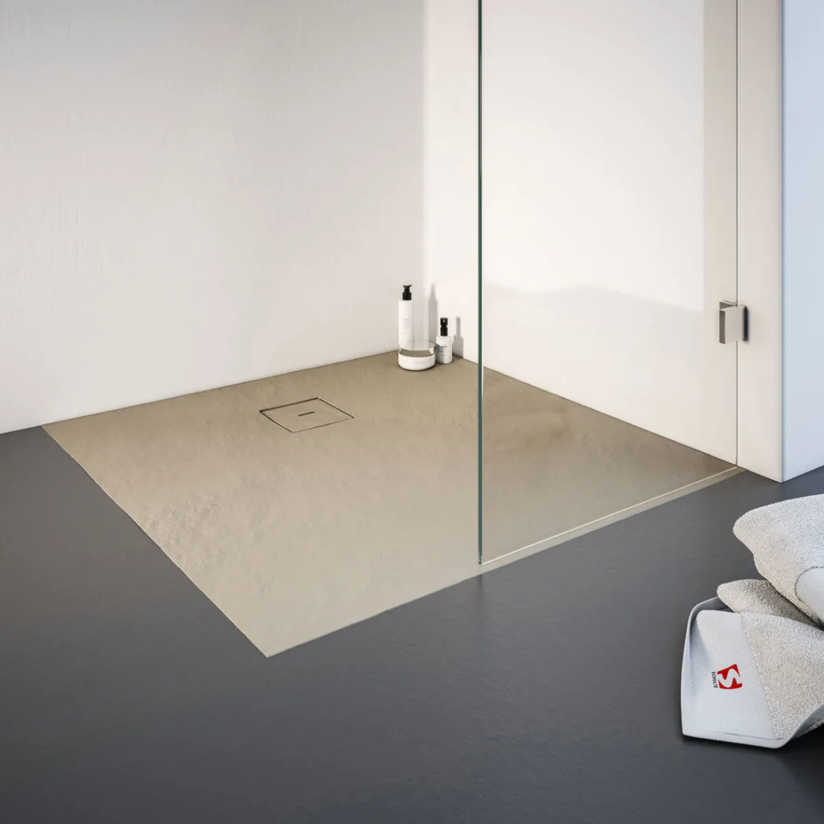 - Hochwertige Duschwanne aus Mineralguss mit Steinstruktur in Quadrat-Plan Form