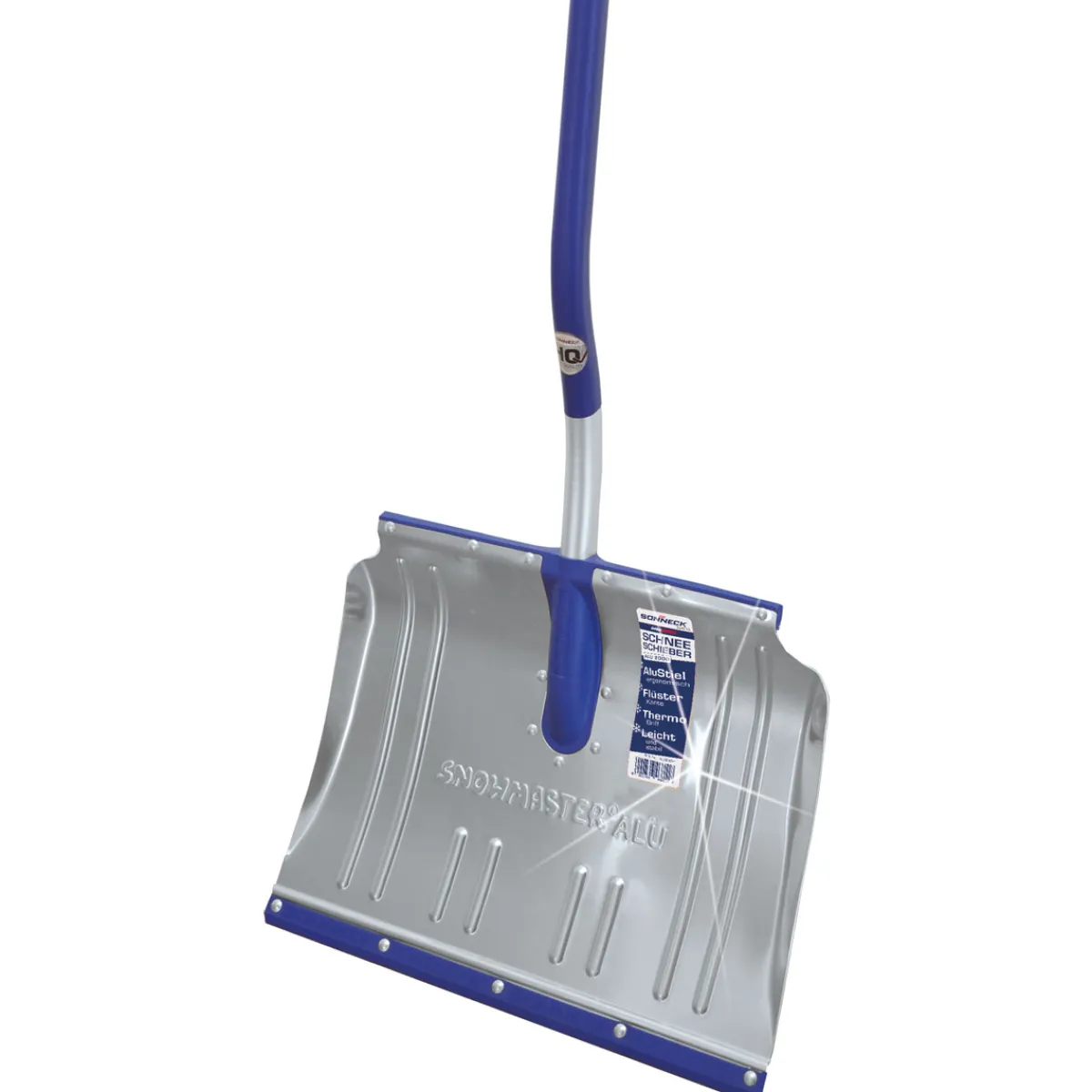 Der besonders leichte Aluminium Schneeschieber ermöglicht durch den doppelt gebogenem Stiel ergonomisch richtiges und somit kräfte- & rückenschonendes Arbeiten.