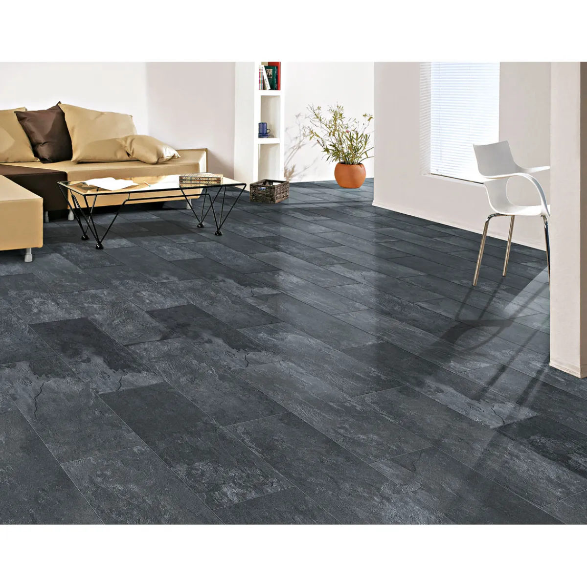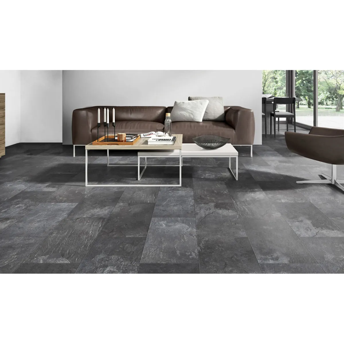 - Fliesenformat schafft eine authentische Optik, die an hochwertige Steinfliesen erinnert