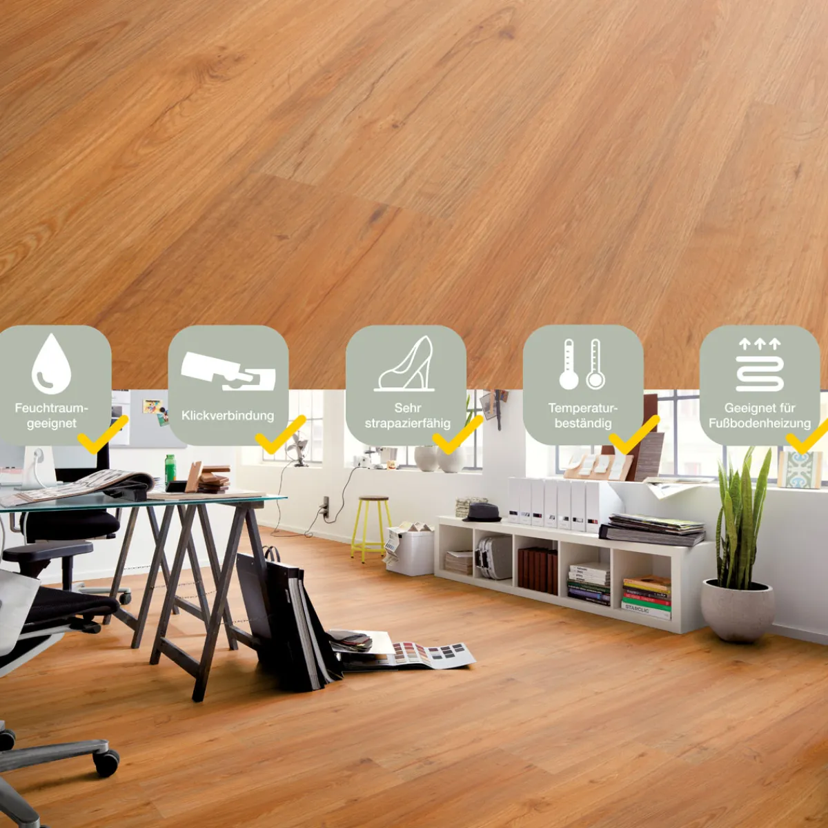 - Nutzungsklasse 23 macht diesen Boden perfekt für stark beanspruchte Wohn- oder Arbeitsbereiche.