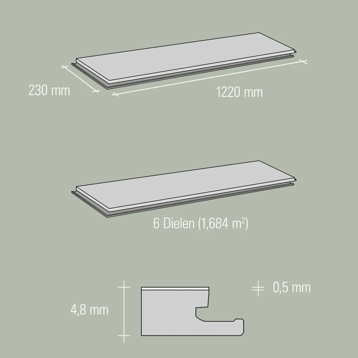 - Die robuste Nutzschicht von 0,5 mm bietet Schutz vor Kratzern und Abnutzung im Alltag.