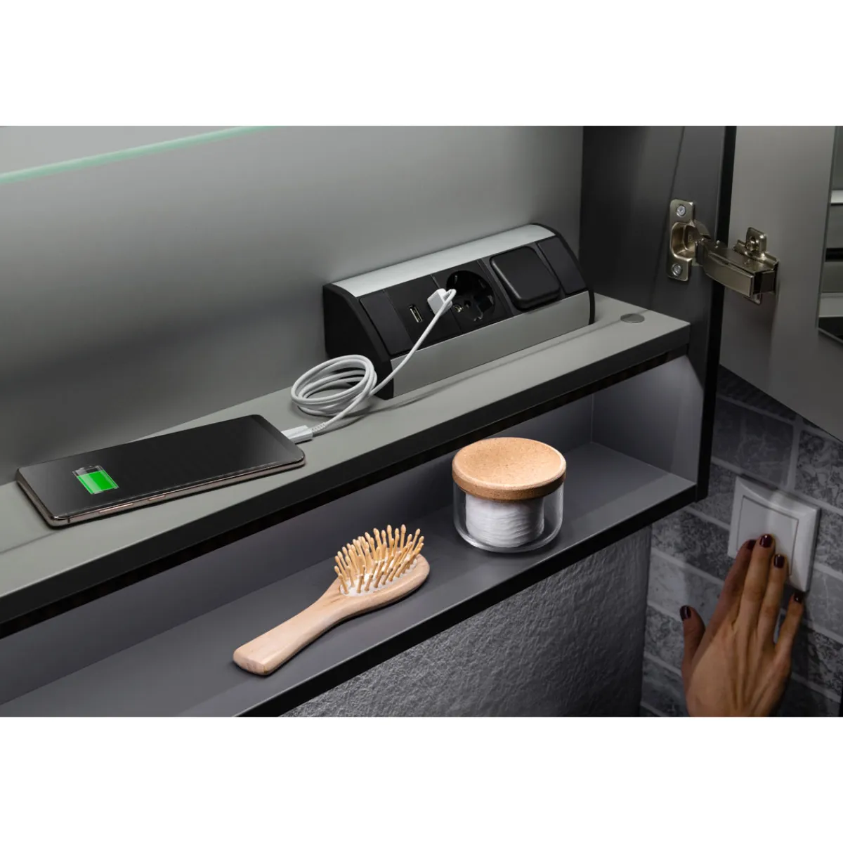 Erleben Sie mit dem Fackelmann Spiegelschrank LUNA ein modernes und stilvolles Badezimmer. Der Schrank bietet nicht nur ausreichend Stauraum, sondern auch eine praktische Elektrobox mit USB-Anschluss sowie eine LED-Leuchte für eine angenehme Beleuchtung.