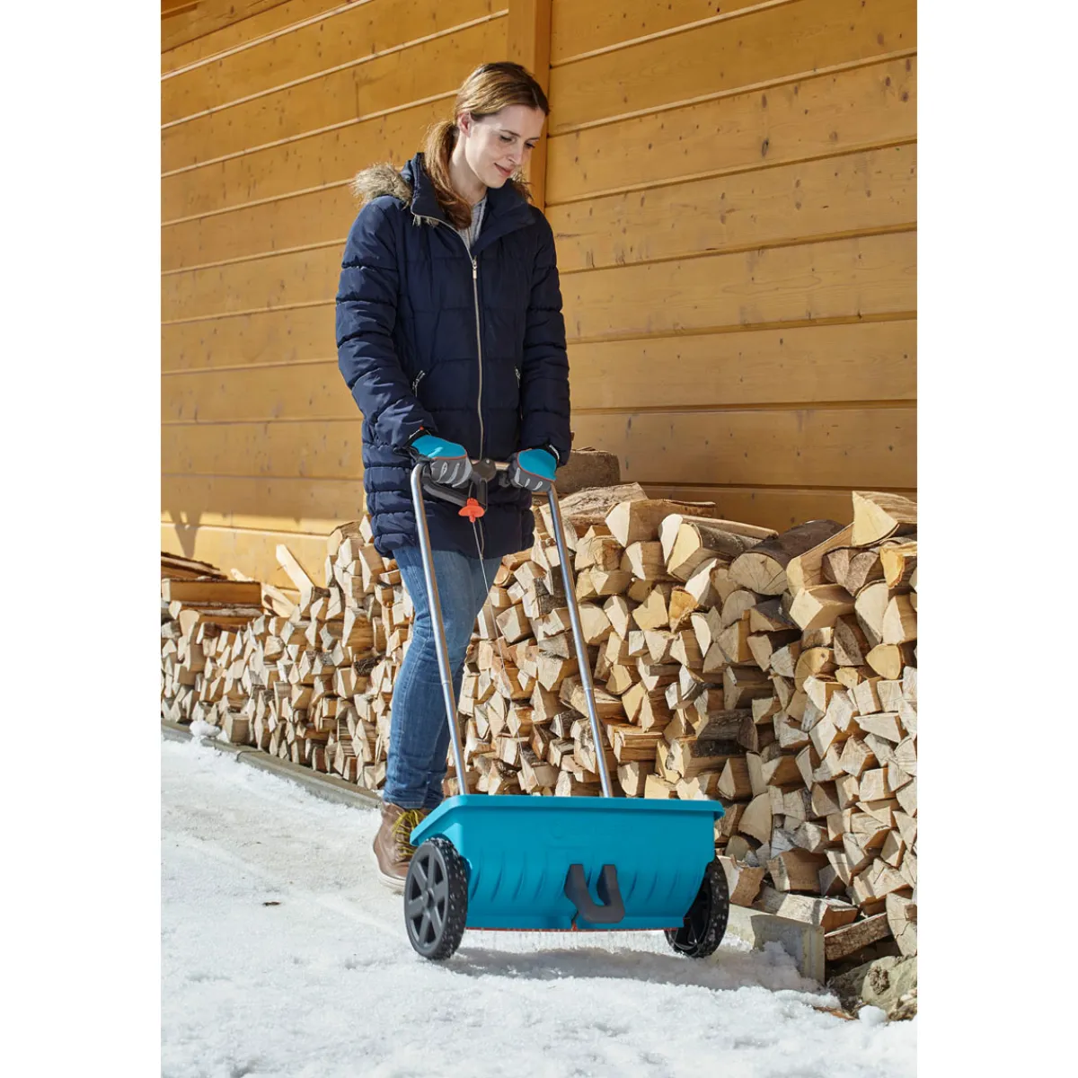 - Ausstattung: Handschalter mit mehrstufiger Dosier-Einstellung am Griff; Streu-Stopp-Bügel; Verschluss Schieber mit Dichtlippe zum zuverlässigen Verschließen des Behälters; Abdeckklappe zum einfachen Entleeren und Reinigen.