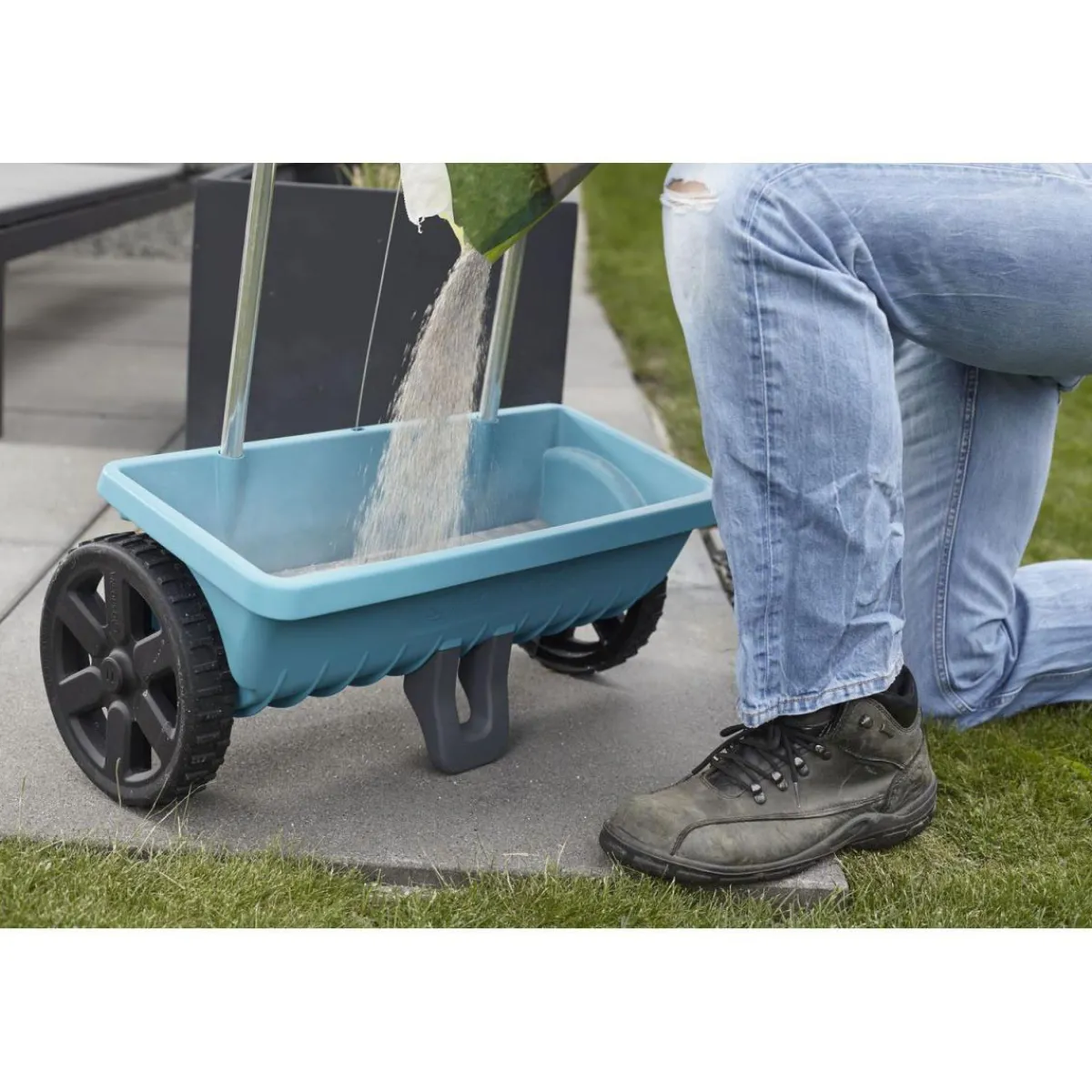 - Geeignet für: Saatgut, Dünger, Streusalz, Granulat, Sand