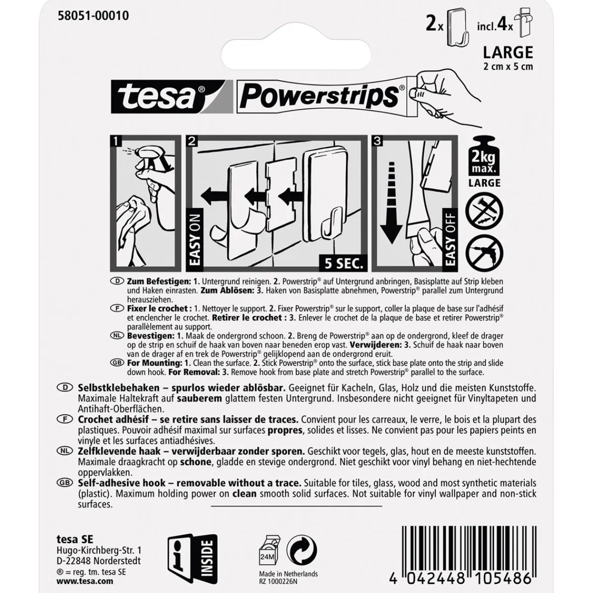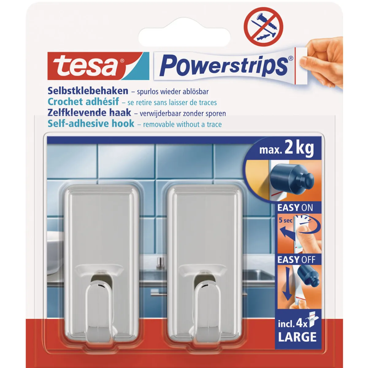 - Lieferumfang: 2 Haken / 4 Strips Large