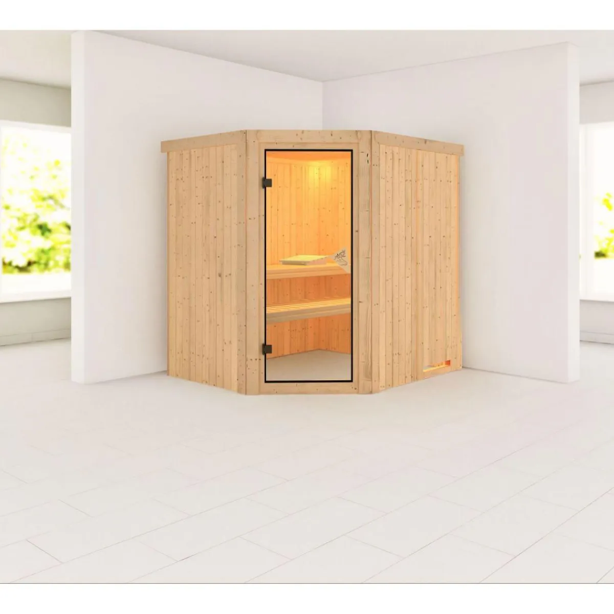 Erleben Sie die pure Entspannung in Ihrer eigenen Sauna! Die Karibu Systemsauna Siirin bietet Ihnen alles, was Sie für einen erholsamen Saunagang benötigen. Aus nordischer Fichte gefertigt und mit einer Wandstärke von 68 mm ist sie besonders robust und langlebig. Mit einer Grundfläche von 3,08 m² bietet sie ausreichend Platz für bis zu zwei Personen.