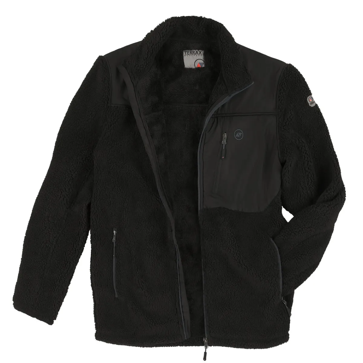 Herren Faserpelzjacke mit Coralfleece gebondet, Stehkragen, praktische Reißverschlusstaschen, kontrastfarbige Details, Terrax Workwear Label
