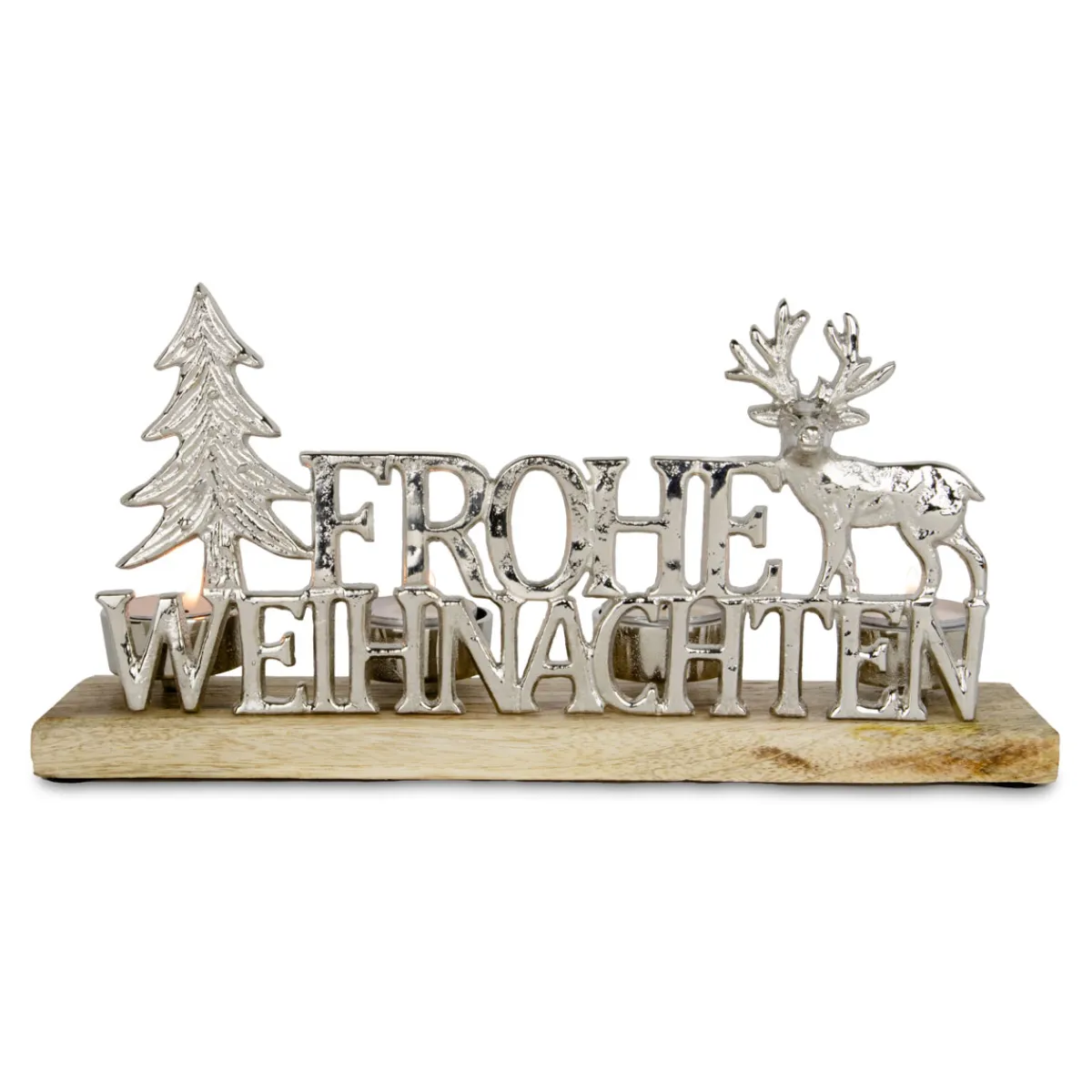 Tischdeko mit Schriftzug 4 Kerzenhalter Aluminium Produktdetails